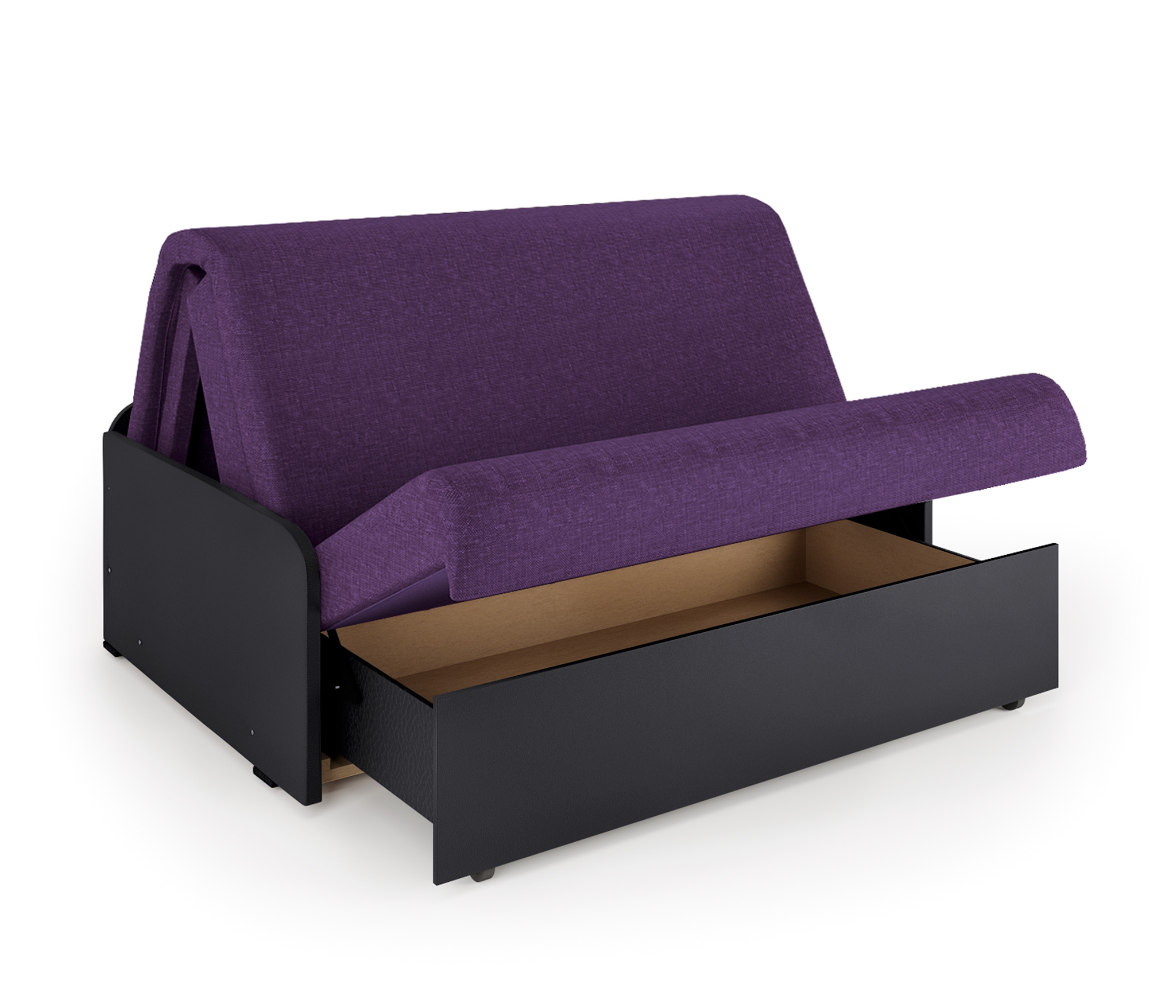 Диван-кровать Коломбо БП 140, рогожка / экокожа (Черный/Фиолетовый)