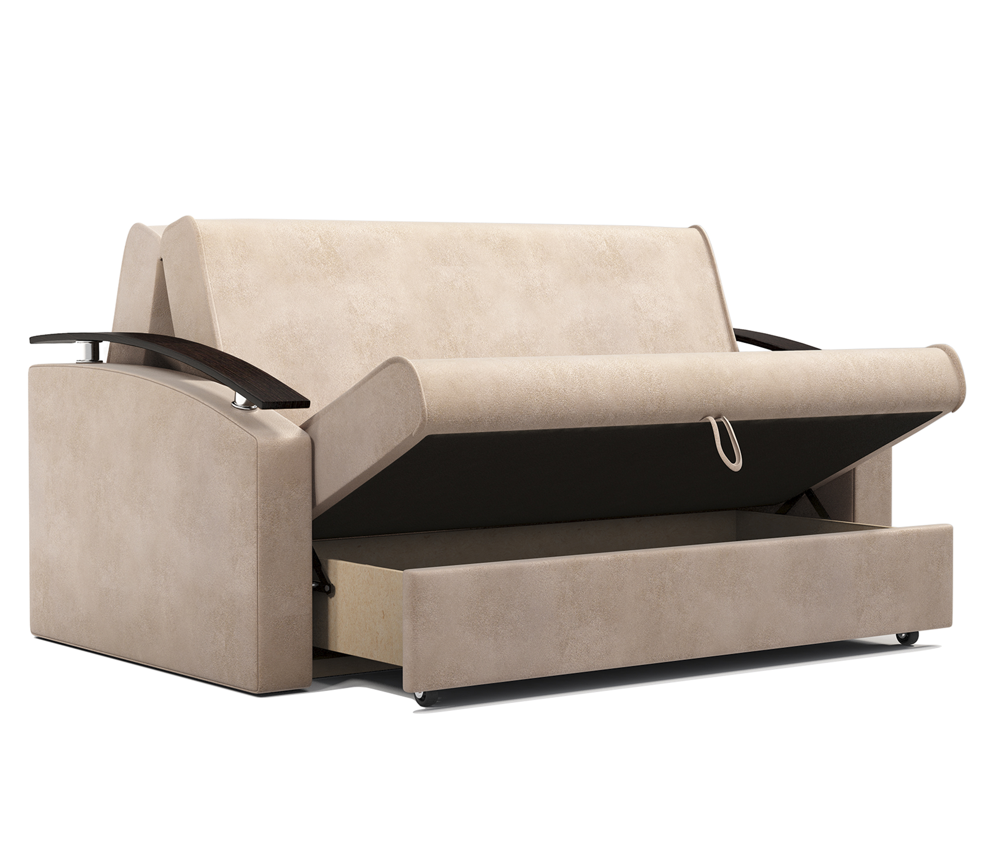 Дополнительно, диван оснащен вместительным ящиком для белья с габаритами 1570 x 690 x 180 мм, что позволяет хранить вещи и сохранять порядок в комнате. Механизм трансформации аккордеон позволяет легко и быстро переводить диван в полноценную кровать.