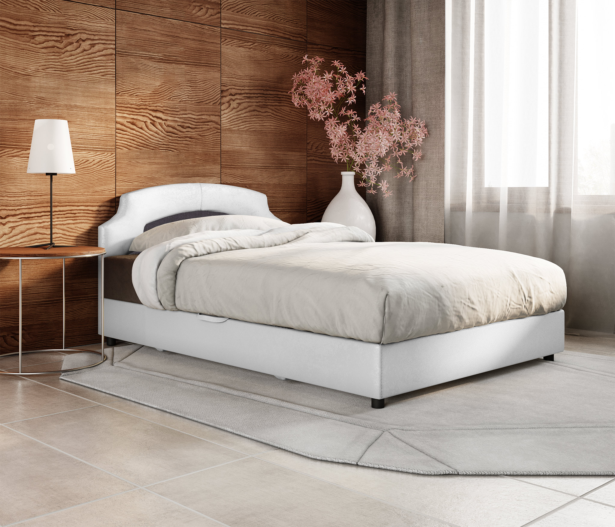 Наполнитель: пенополиуретан (ППУ), пружиный блок, войлок, обивочная ткань. Kомплектация: вместительный ящик для белья.