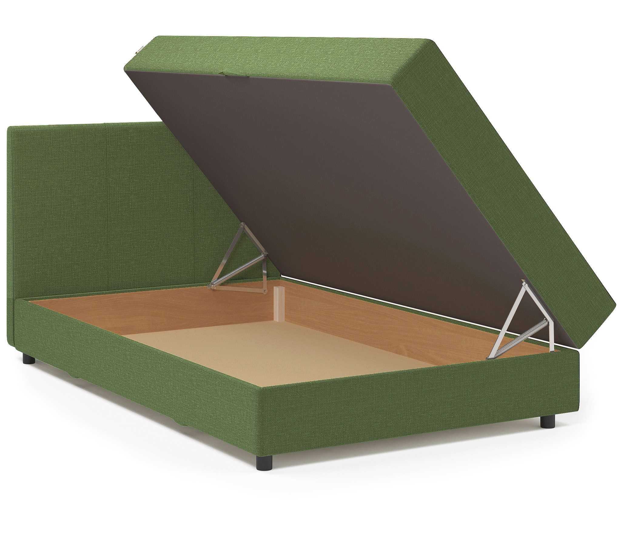 Наполнитель: пенополиуретан (ППУ), пружиный блок, войлок, обивочная ткань. Kомплектация: вместительный ящик для белья.