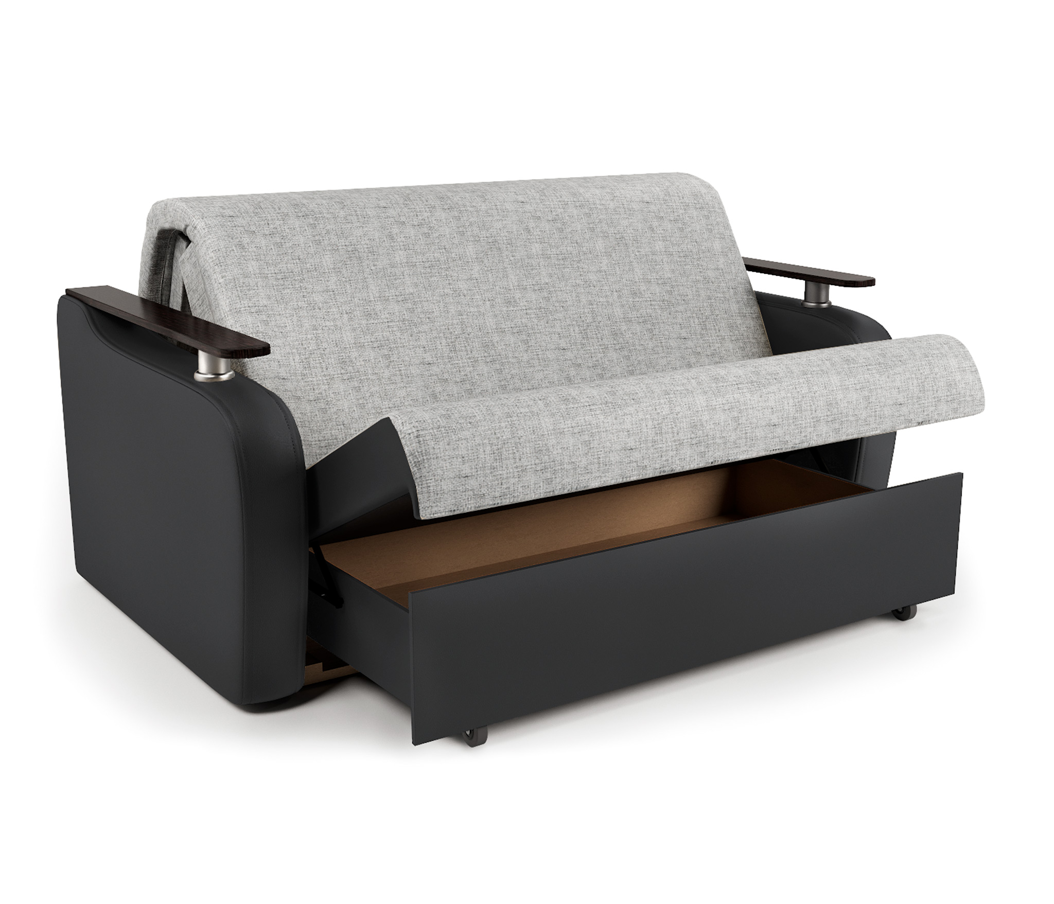 Диван-кровать Гранд Д 100, экокожа/шенилл (Черный/Серый)