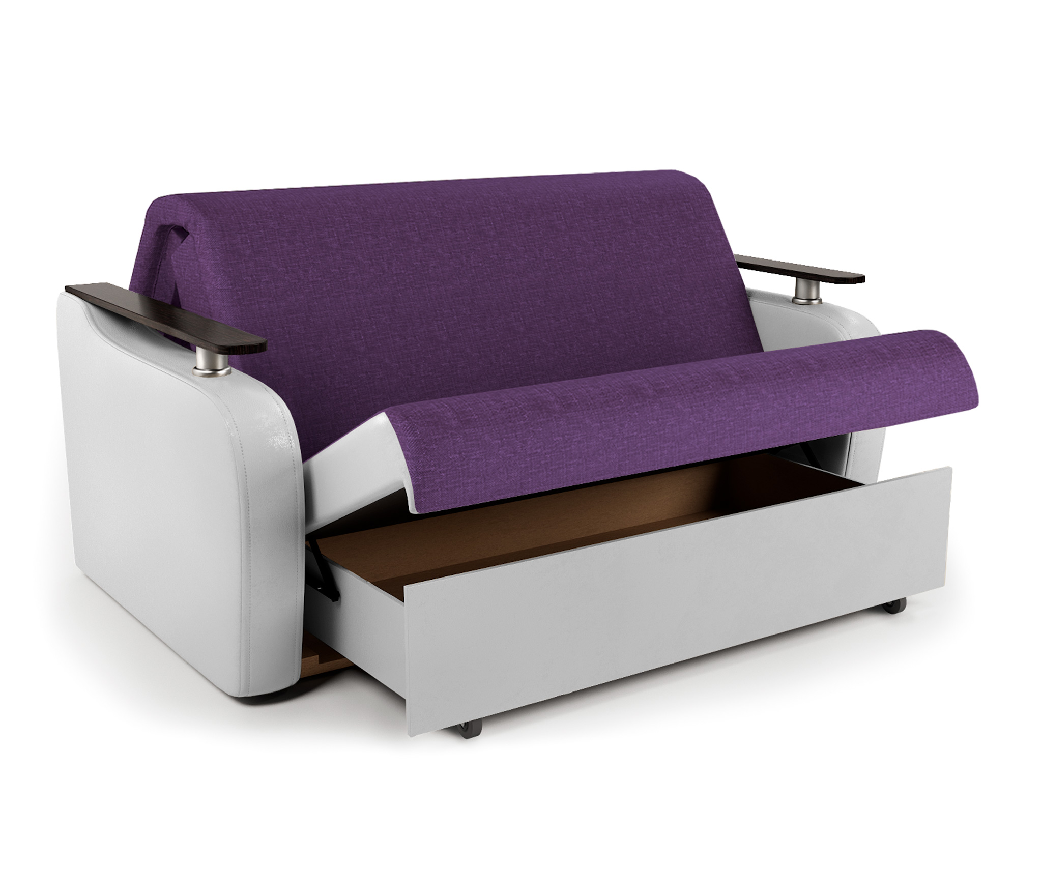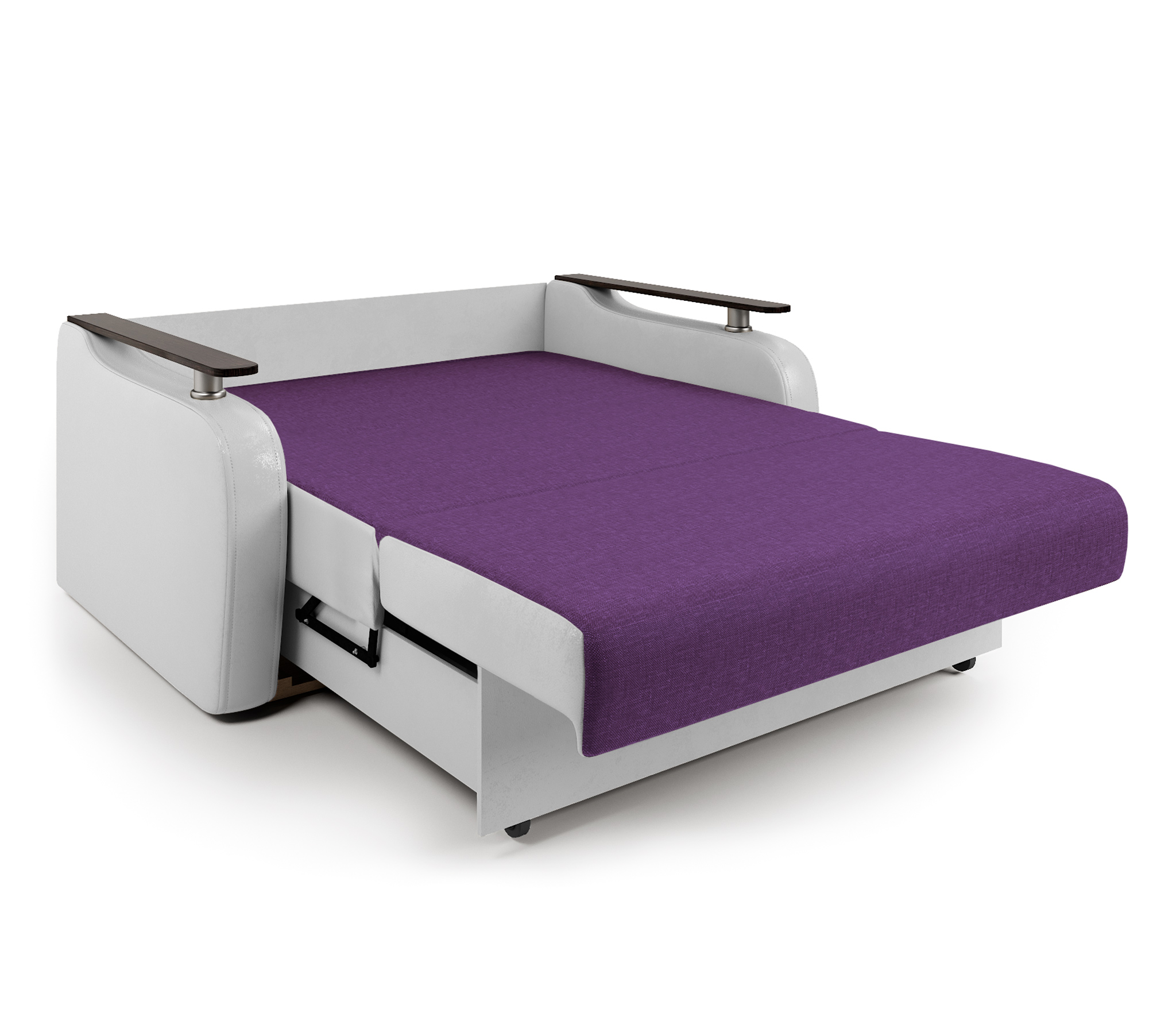Диван-кровать Гранд Д 120, рогожка/экокожа (Фиолетовый/Белый)