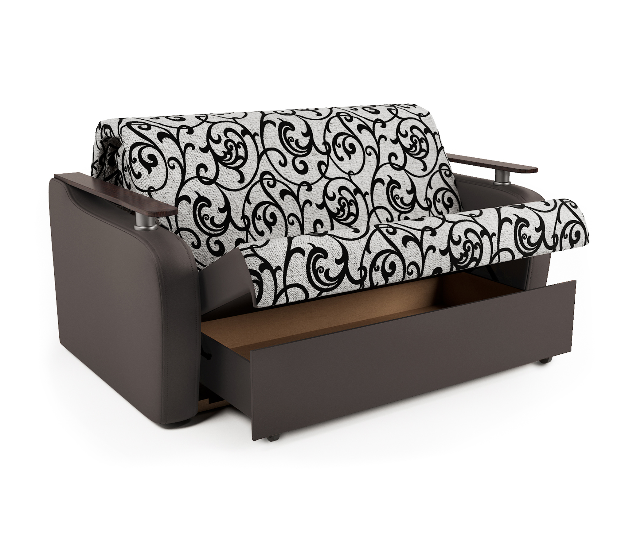 Диван-кровать Гранд Д 120, экокожа/шенилл (Коричневый/ Бежевый)