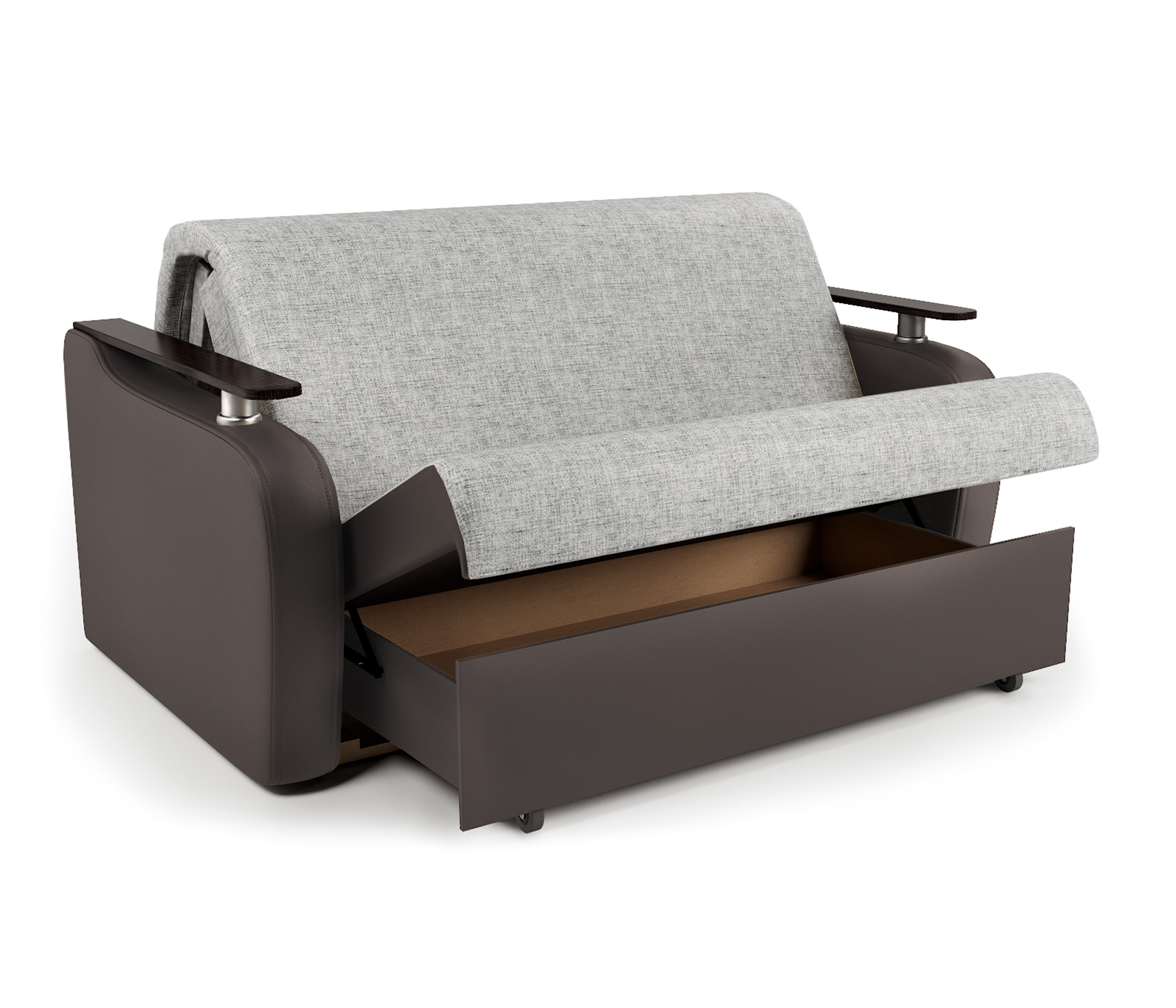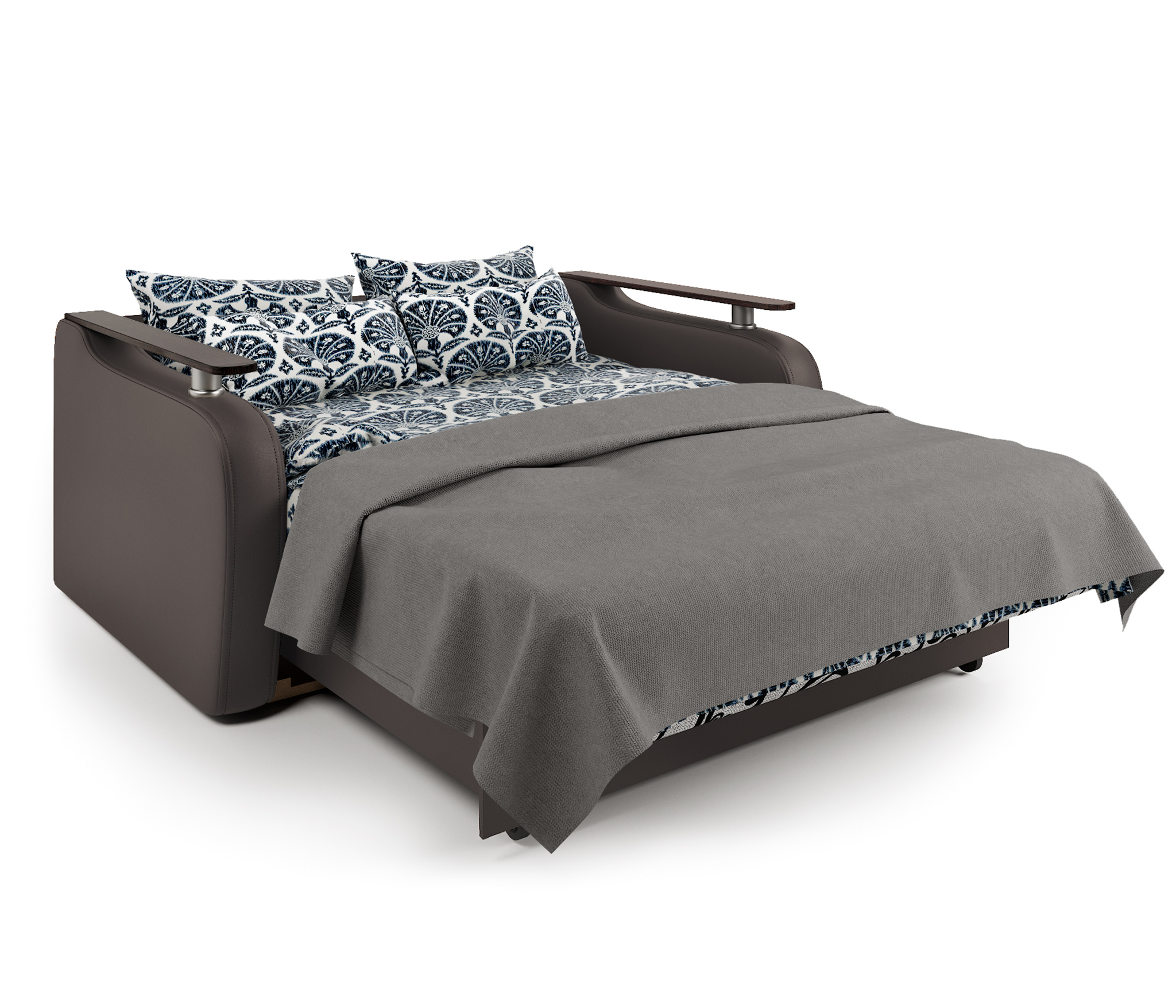 Диван-кровать Гранд Д 120, экокожа/шенилл (Серый/ Коричневый)