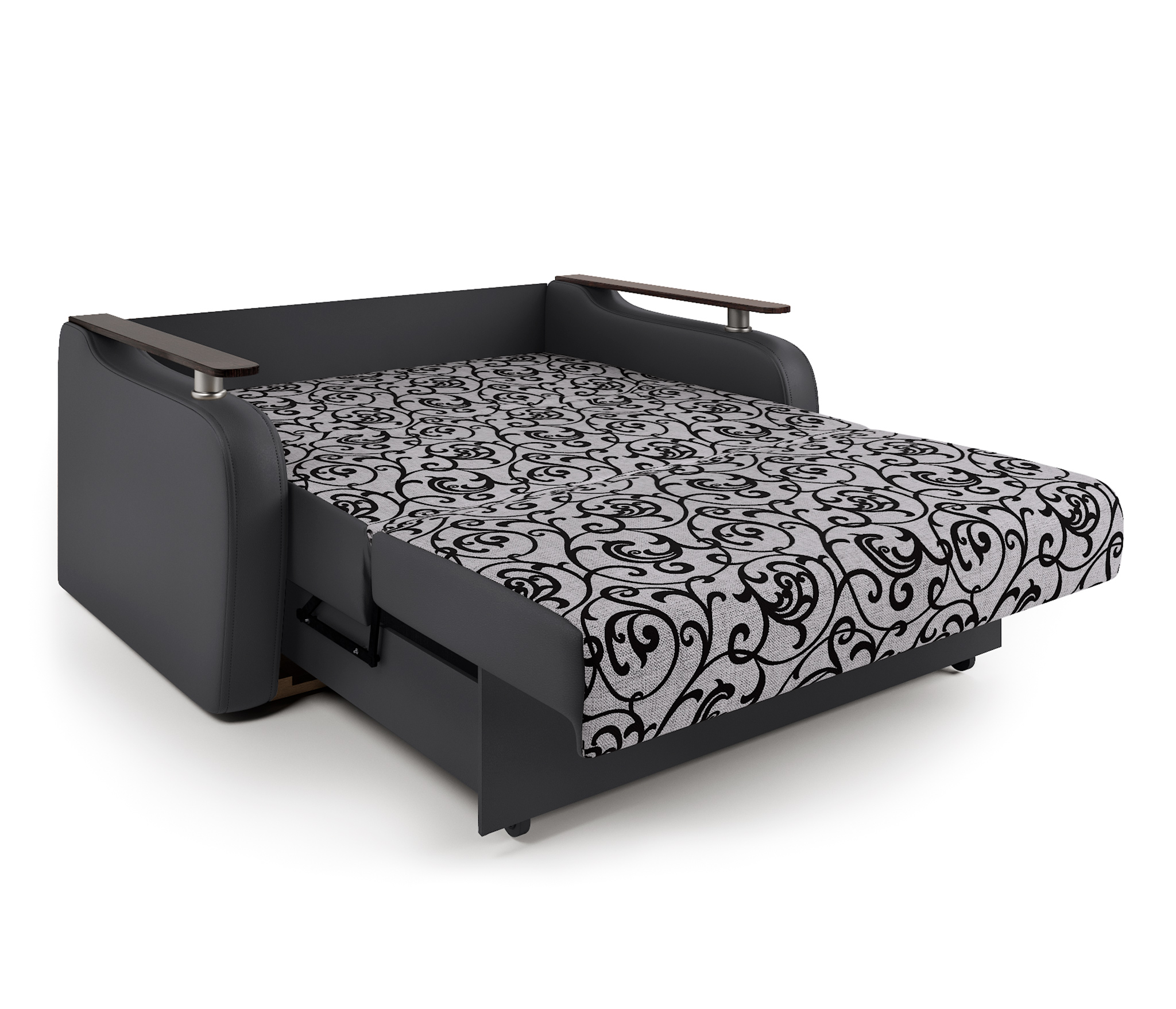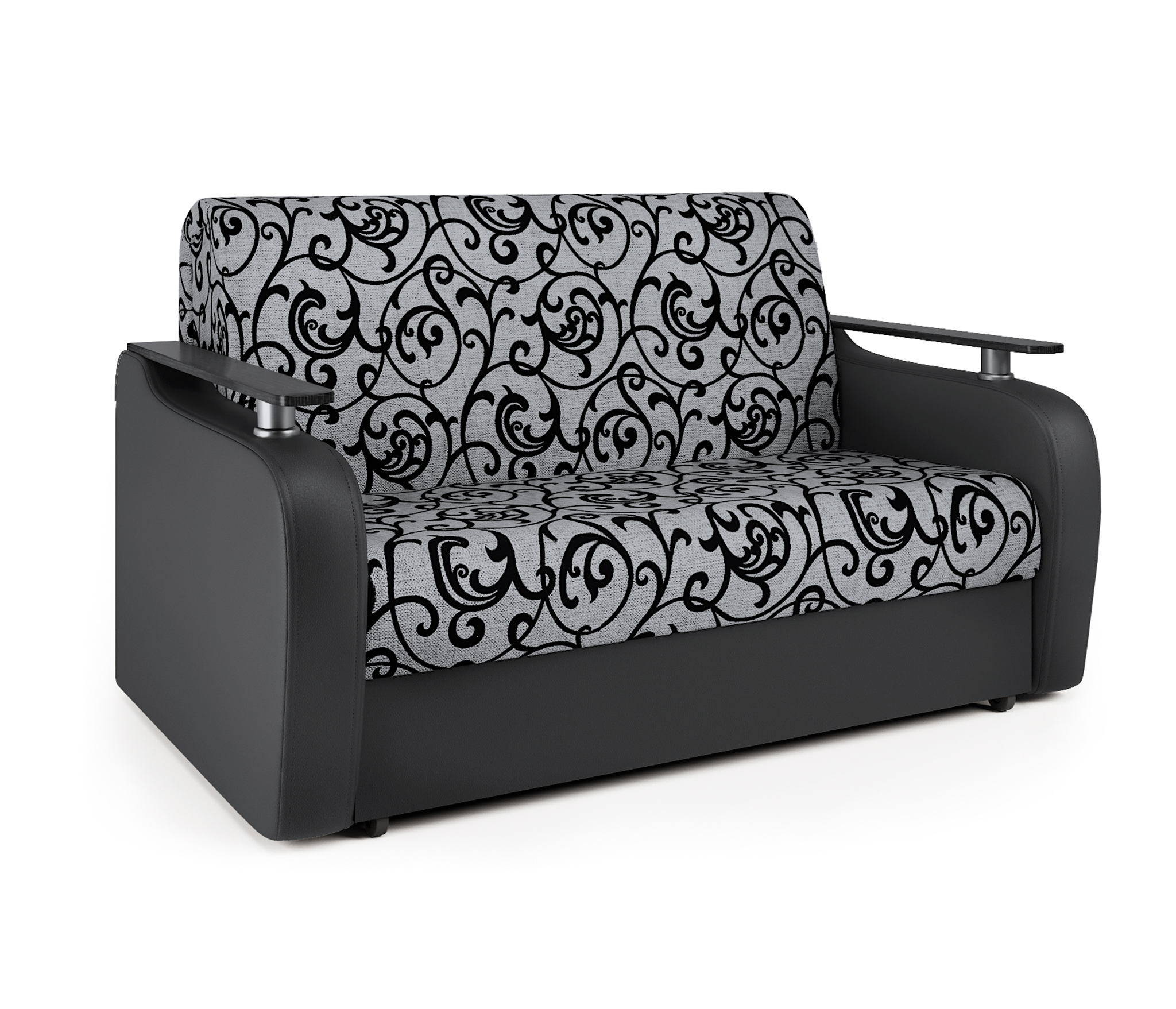 Диван-кровать Гранд Д 140, экокожа/шенилл (Черный/Серый)