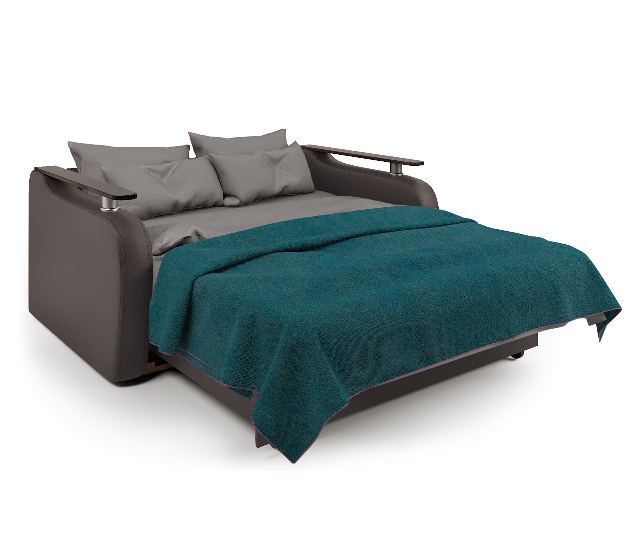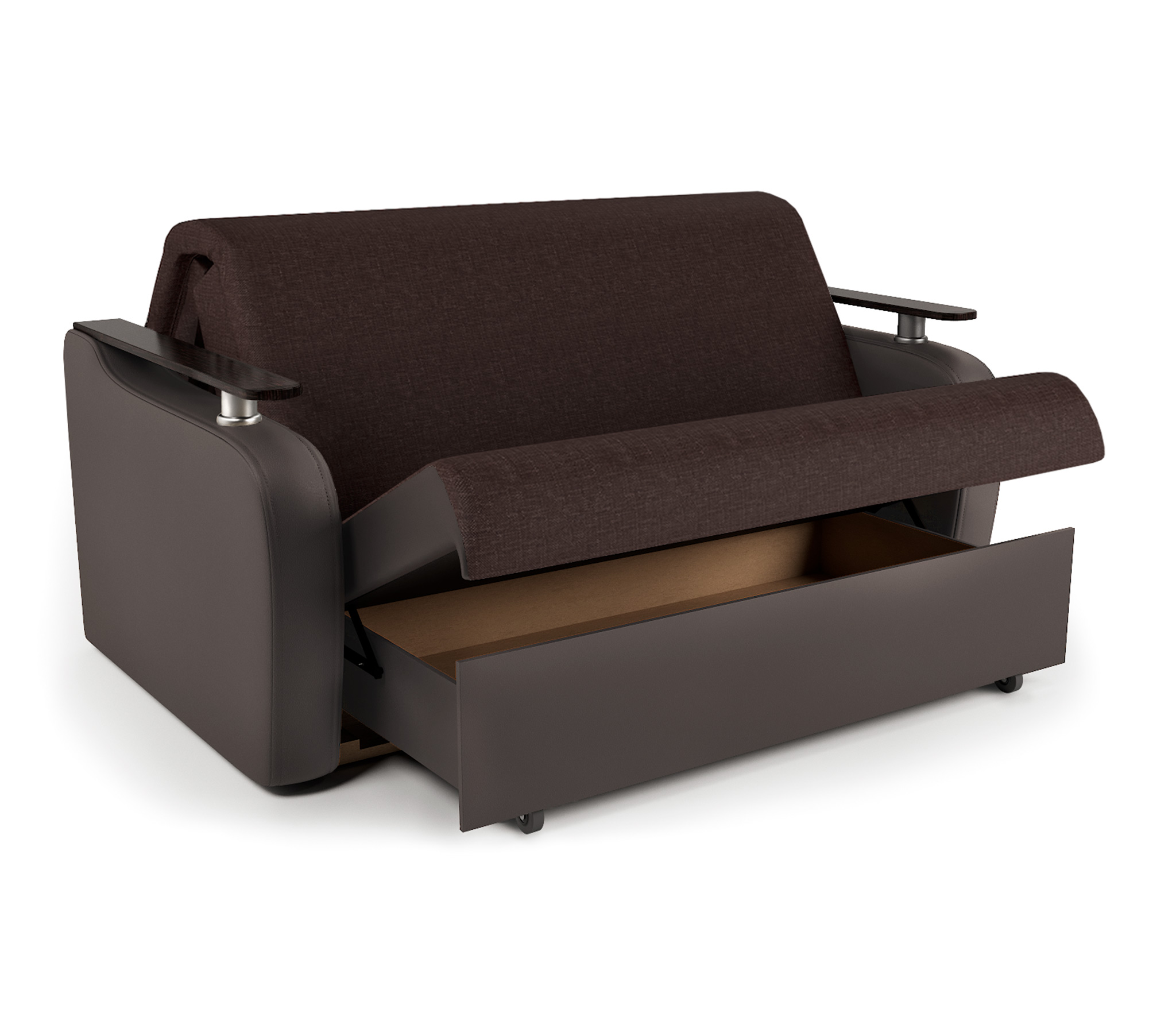 Диван-кровать Гранд Д 160, рогожка/экокожа (Коричневый)