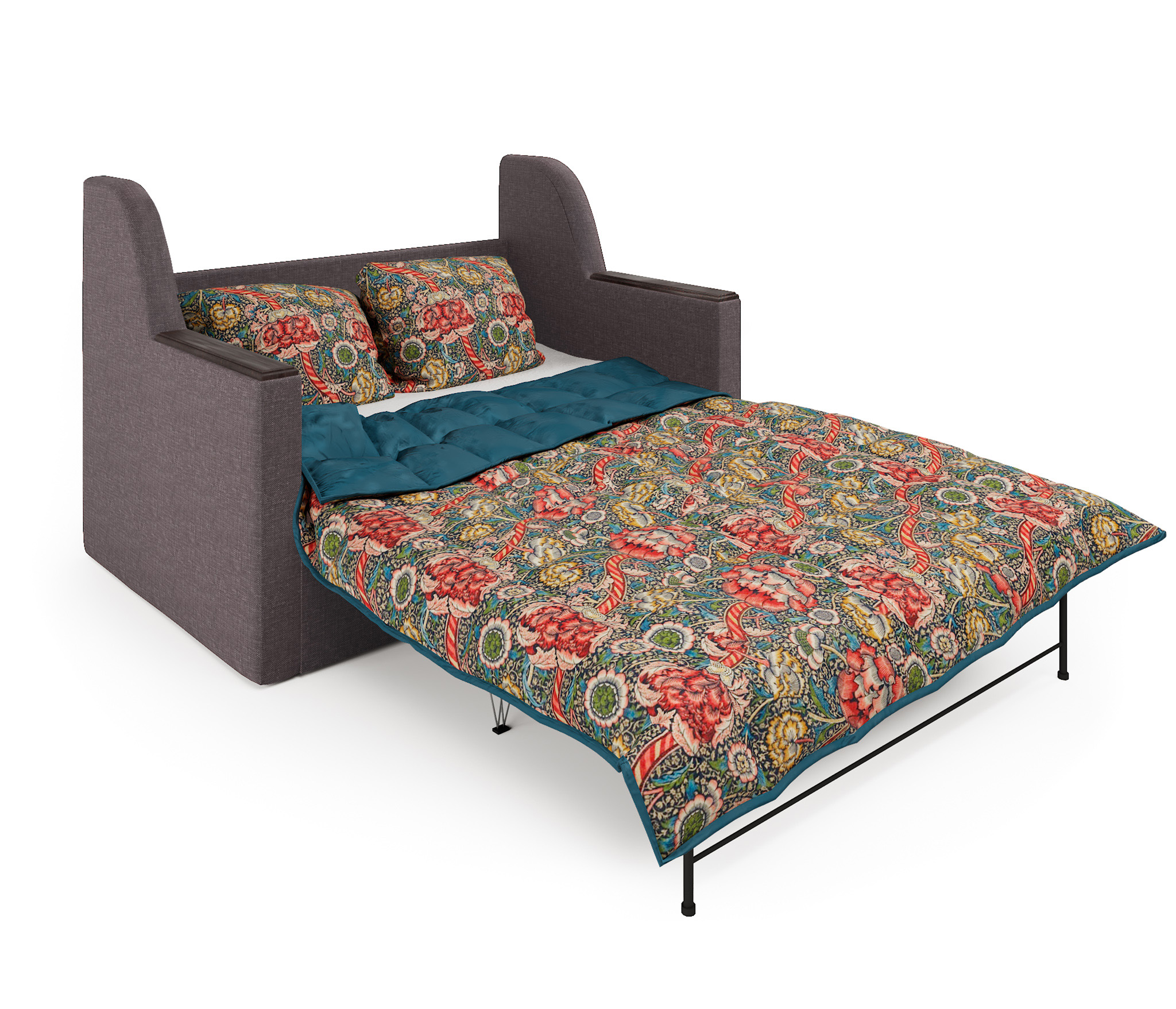 Удобный, компактный, но и вполне подходит как 2-х спальное место. Классический, стильный вид, обивка. Легко складывается и раскладывается. Вместительный ящик для белья. Советую