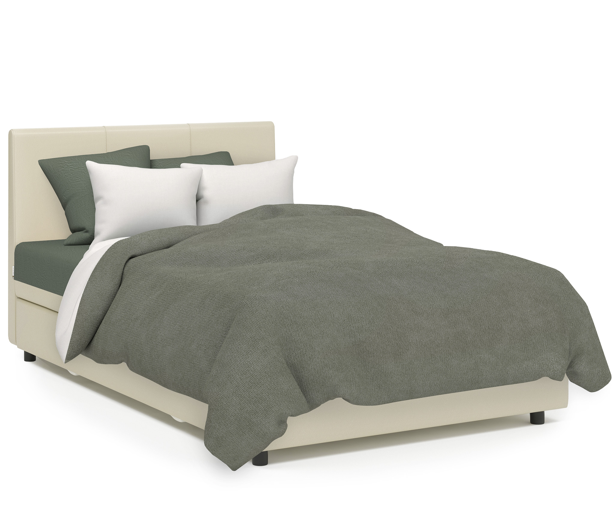 Наполнитель: пенополиуретан (ППУ), пружиный блок, войлок, обивочная ткань. Kомплектация: вместительный ящик для белья.
