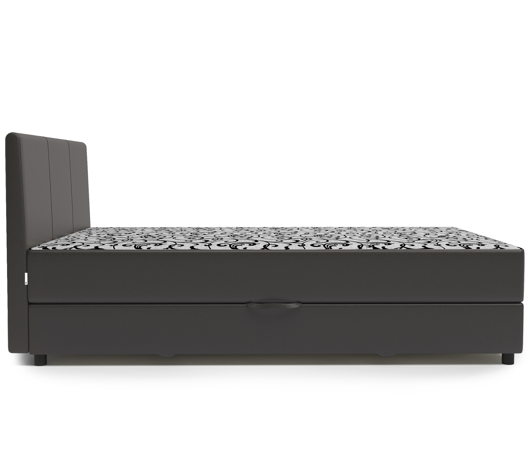 Наполнитель: пенополиуретан (ППУ), пружиный блок, войлок, обивочная ткань. Kомплектация: вместительный ящик для белья.