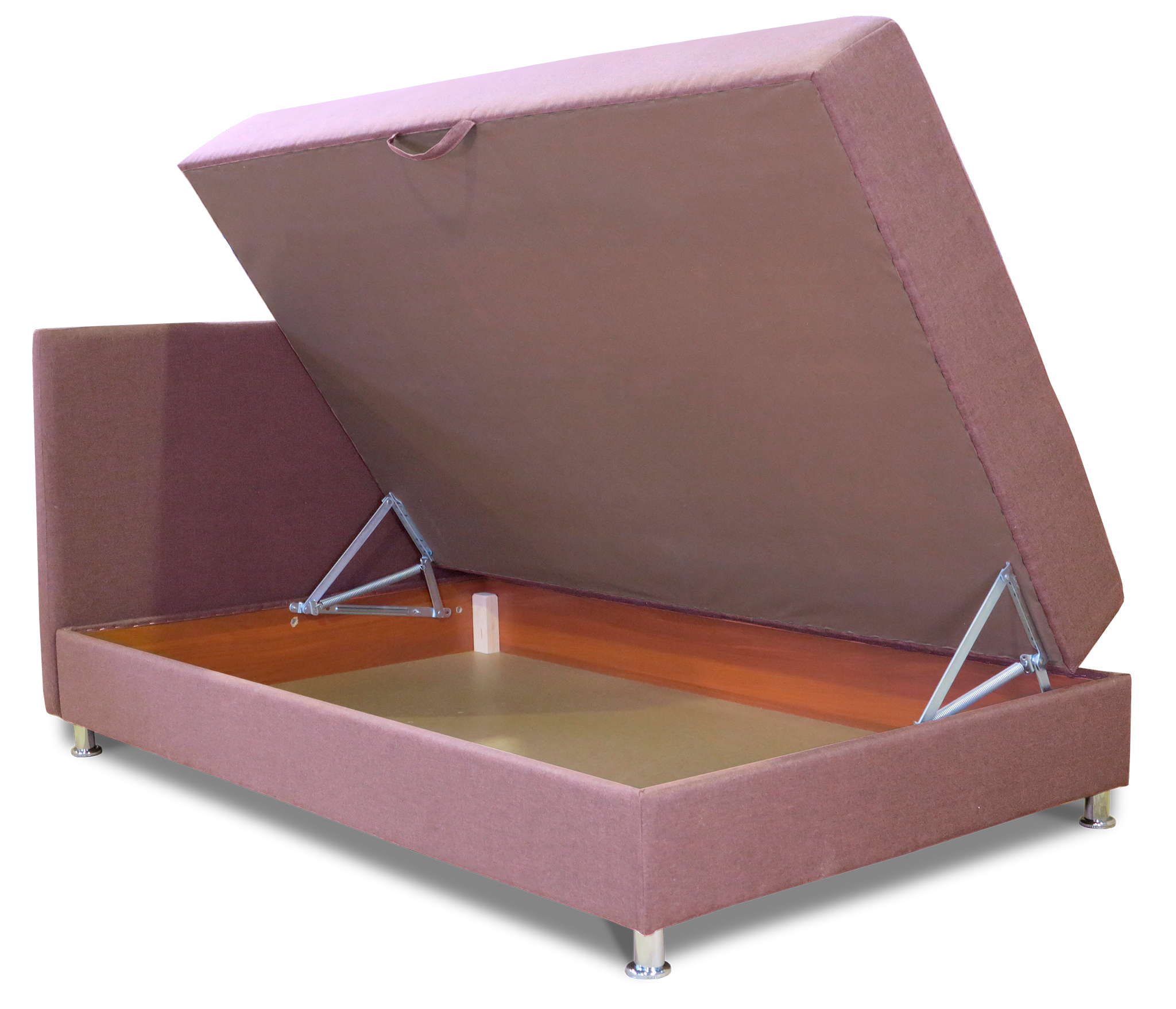 Наполнитель: пенополиуретан (ППУ), пружиный блок, войлок, обивочная ткань. Kомплектация: вместительный ящик для белья.