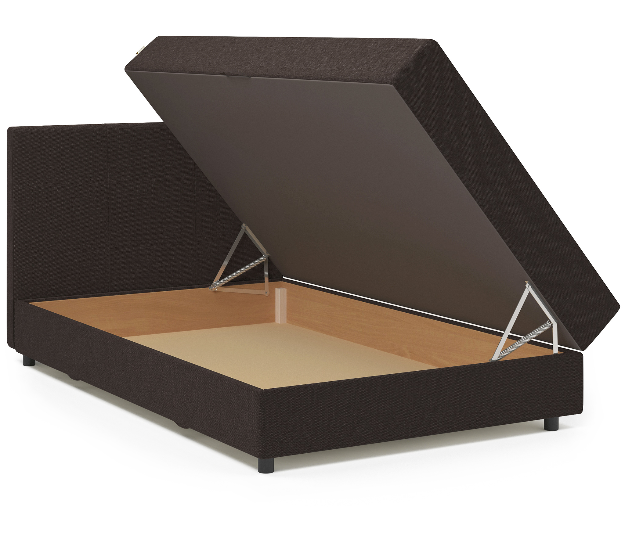 Наполнитель: пенополиуретан (ППУ), пружиный блок, войлок, обивочная ткань. Kомплектация: вместительный ящик для белья.