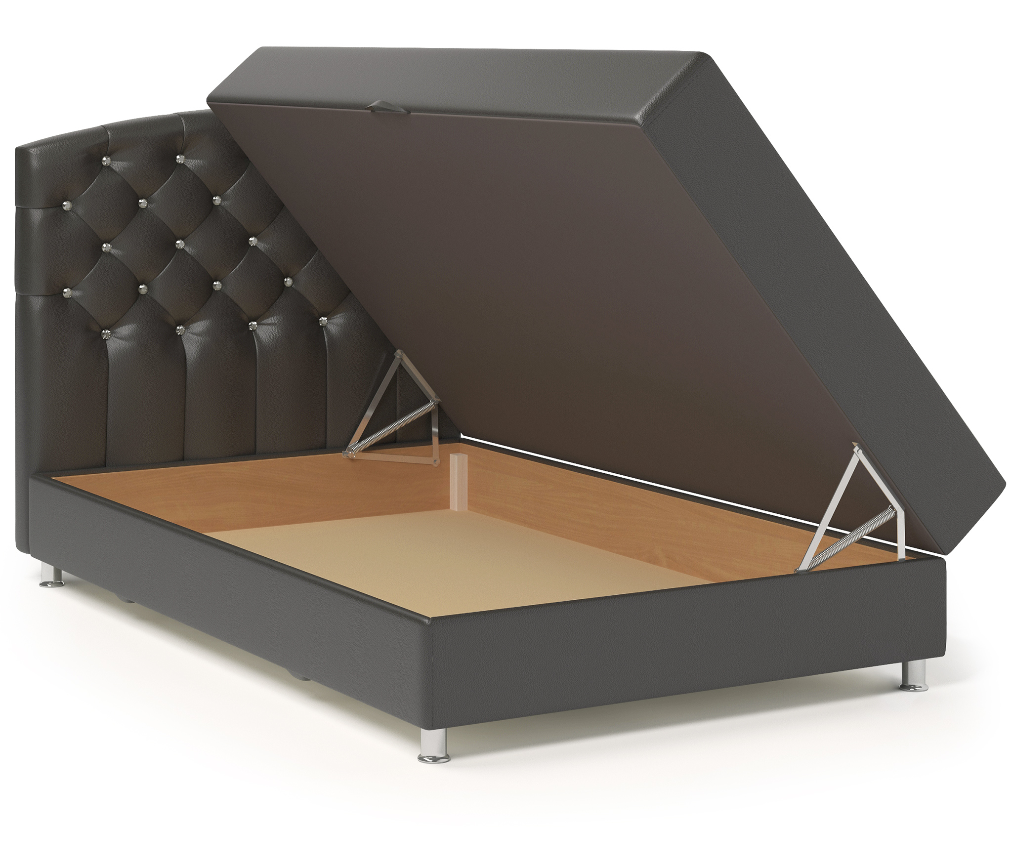 Наполнитель: пенополиуретан (ППУ), пружиный блок, войлок, обивочная ткань. Kомплектация: вместительный ящик для белья.