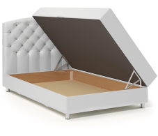 Наполнитель: пенополиуретан (ППУ), пружиный блок, войлок, обивочная ткань. Kомплектация: вместительный ящик для белья.