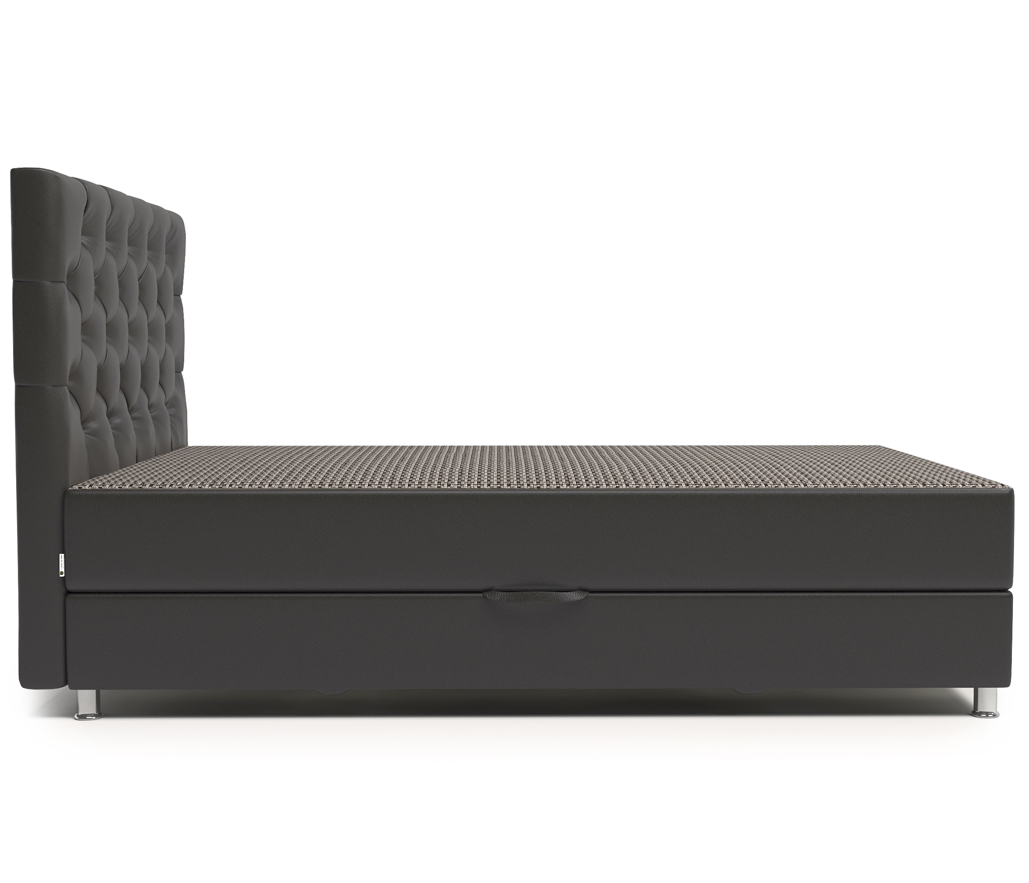 Наполнитель: пенополиуретан (ППУ), пружиный блок, войлок, обивочная ткань. Kомплектация: вместительный ящик для белья.