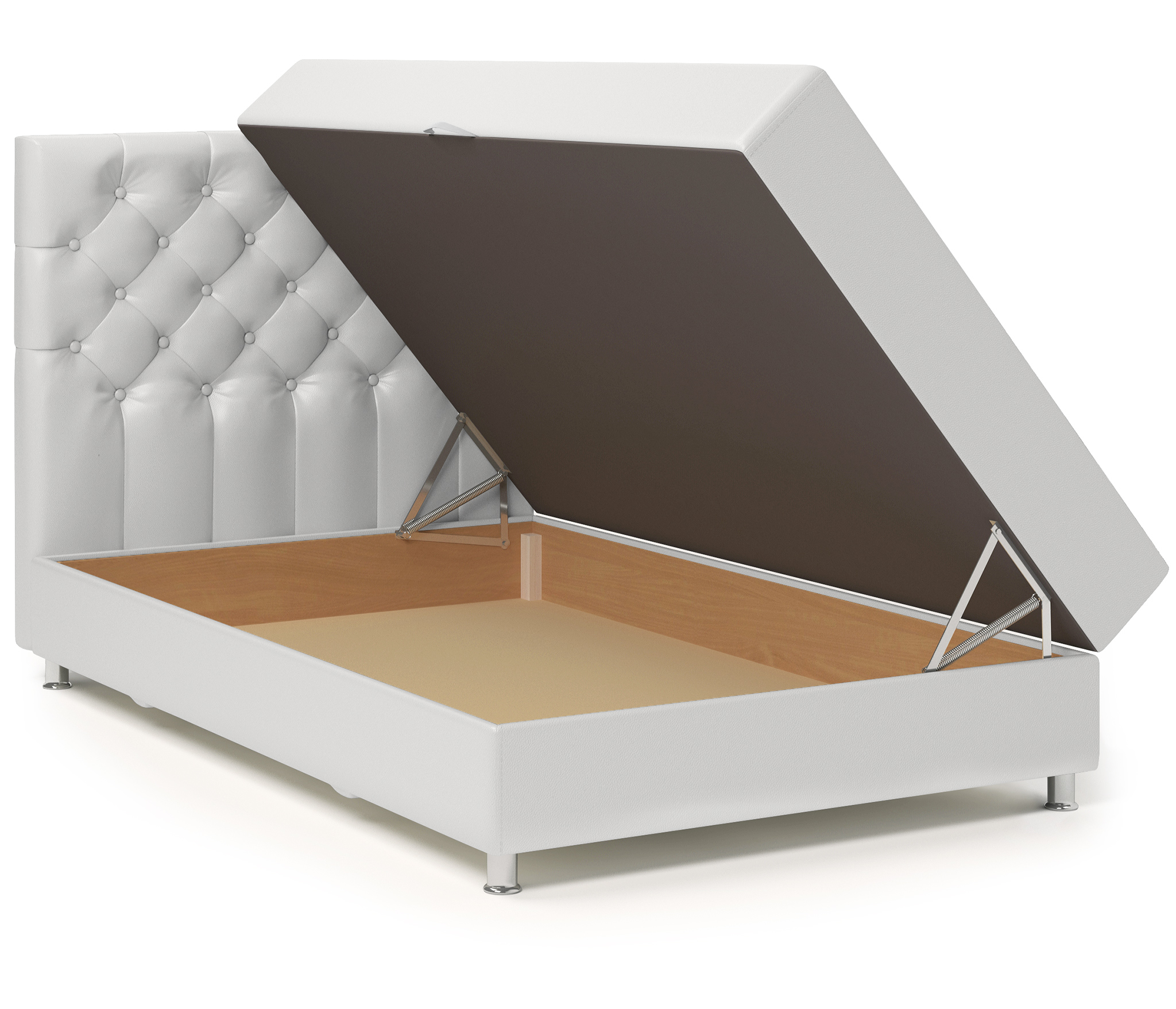 Наполнитель: пенополиуретан (ППУ), пружиный блок, войлок, обивочная ткань. Kомплектация: вместительный ящик для белья.