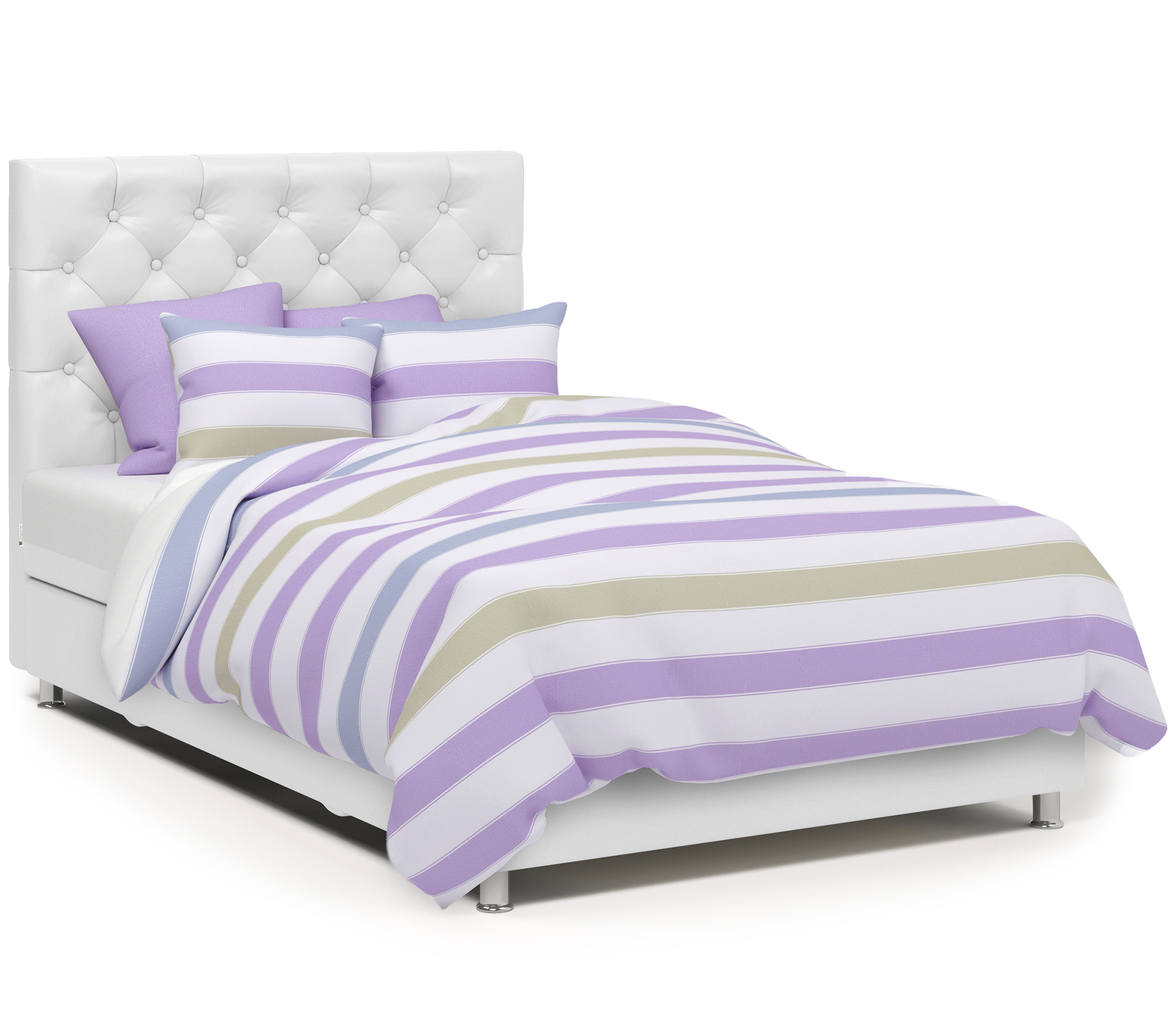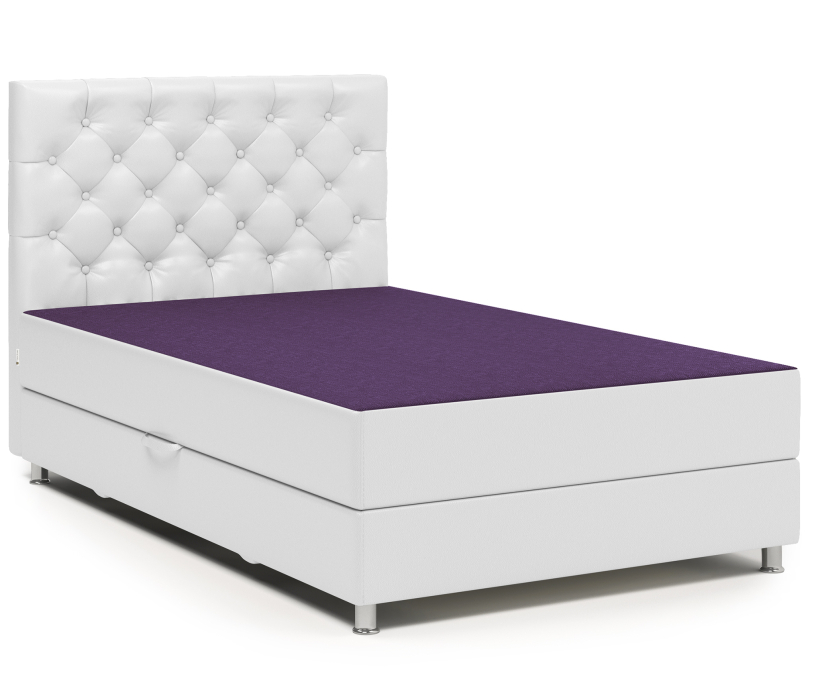 Кровать тахта Шармэль 140 с подъемным механизмом, рогожка / экокожа (Фиолетовый/Белый)