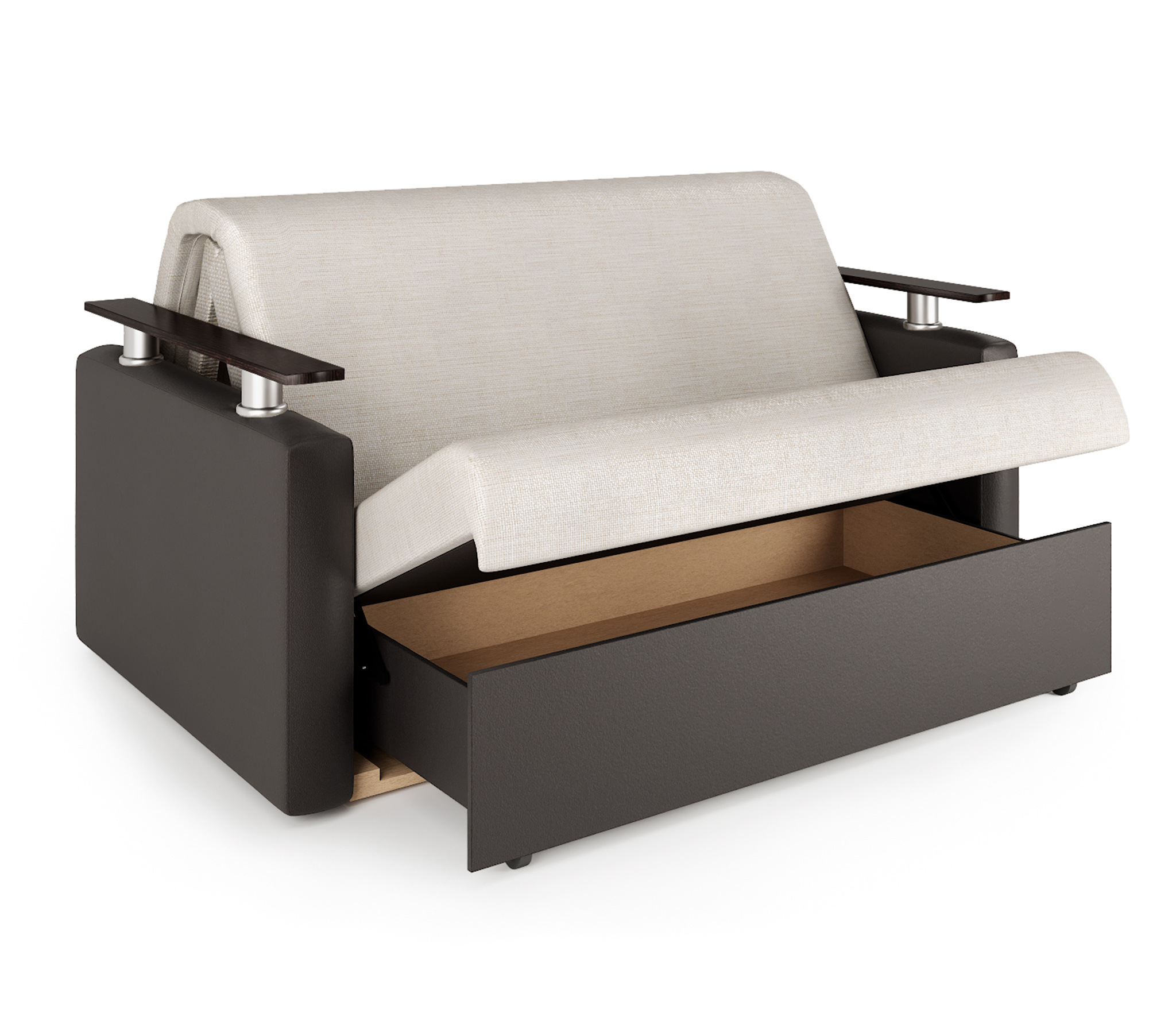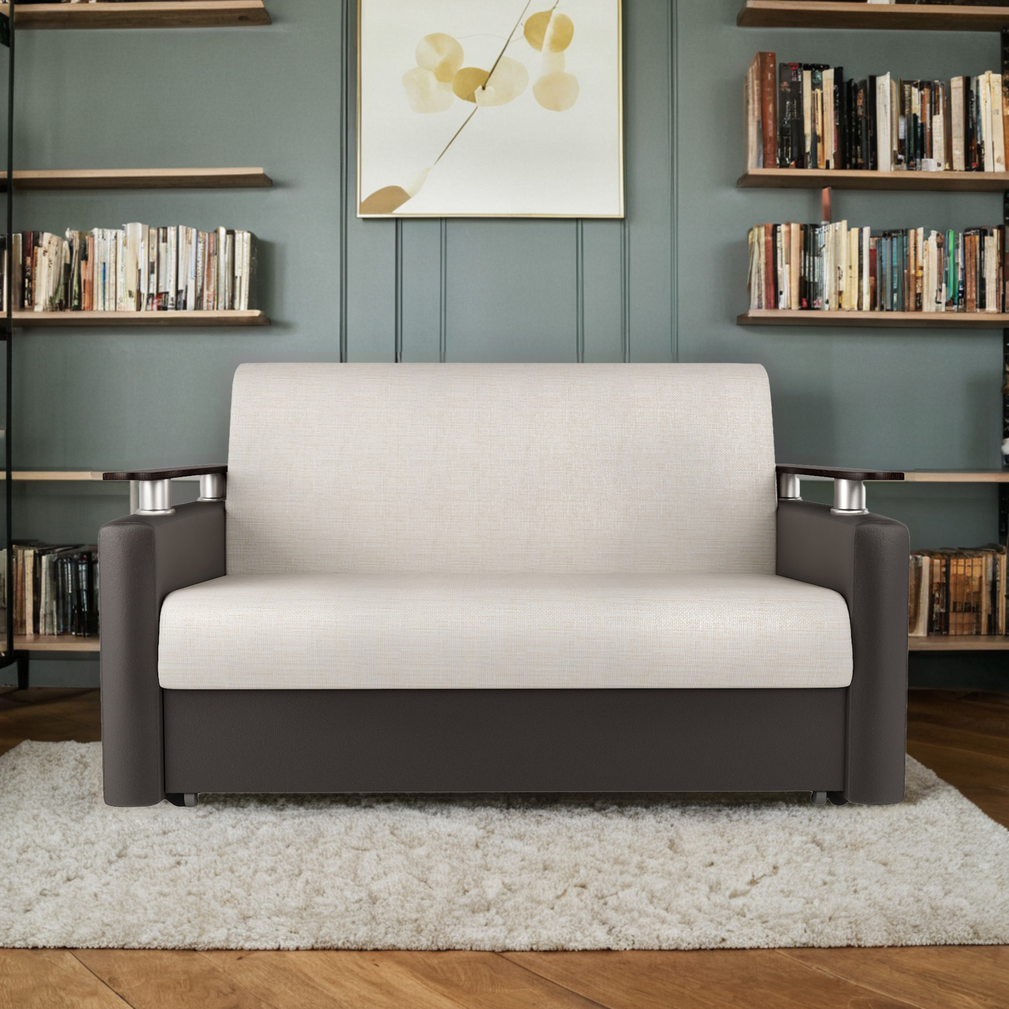 Диван-кровать Шарм 100, экокожа/шенилл (Бежевый/ Коричневый)