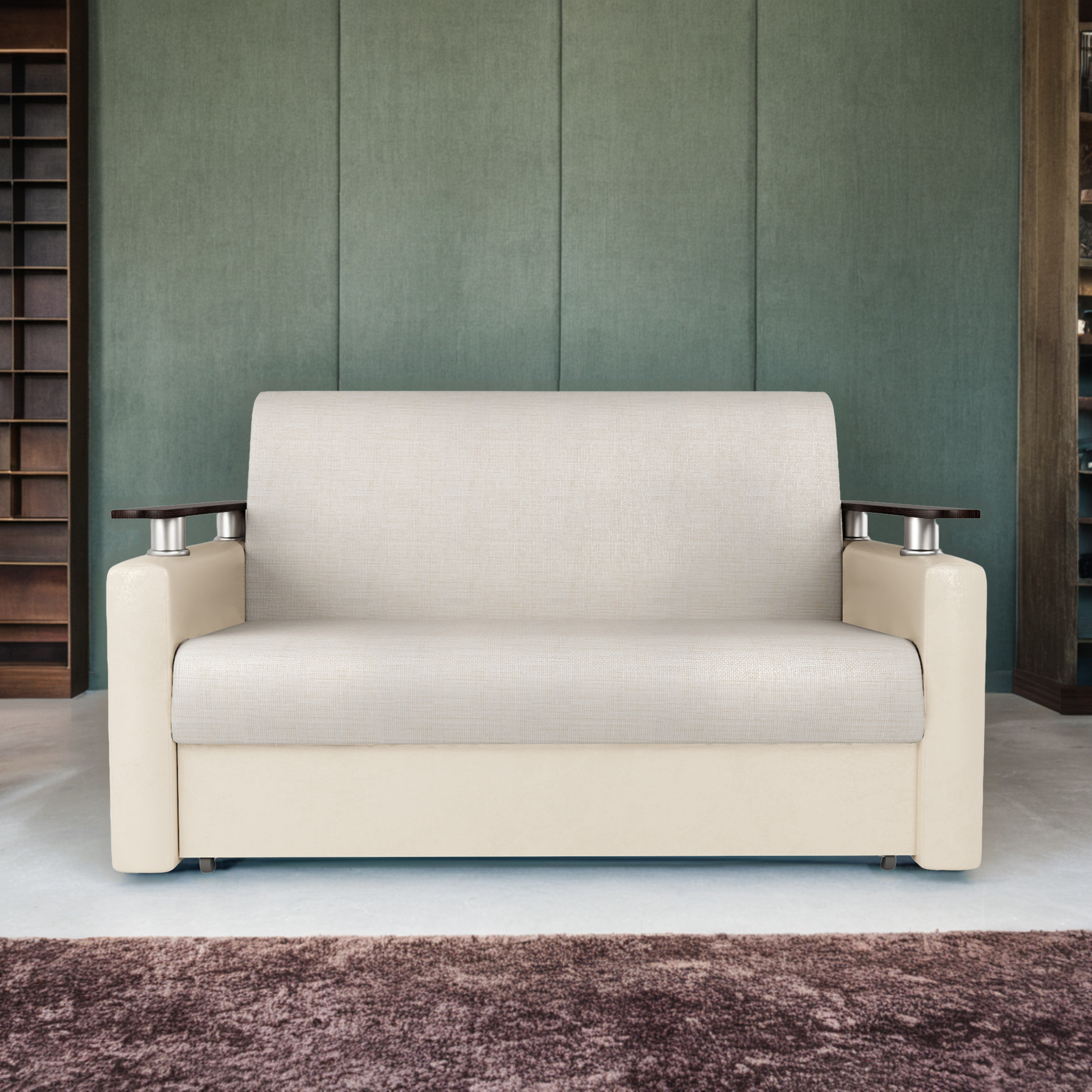 Диван-кровать Шарм 100, экокожа/шенилл (Бежевый)