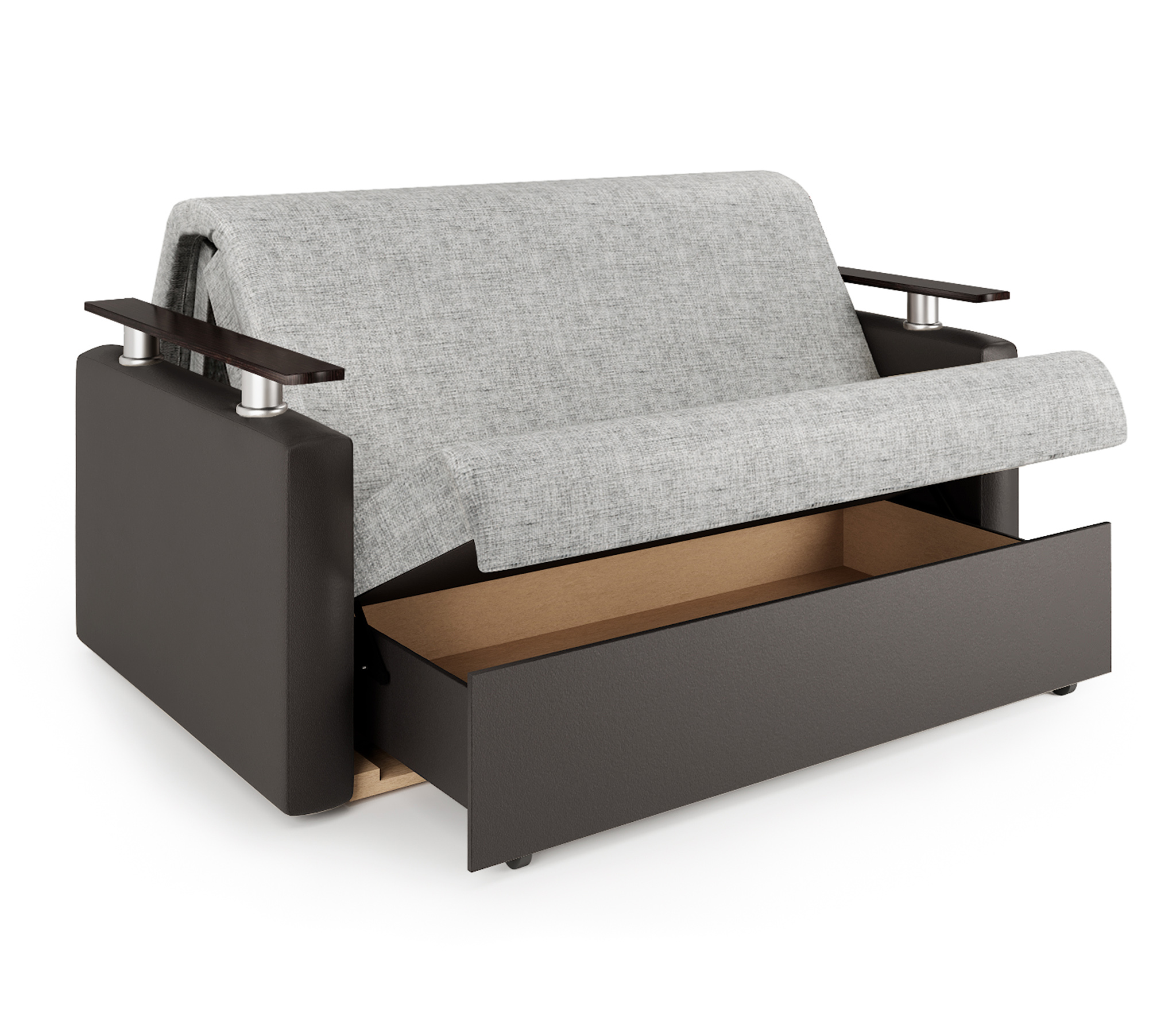 Диван-кровать Шарм 100, экокожа/шенилл (Серый/ Коричневый)