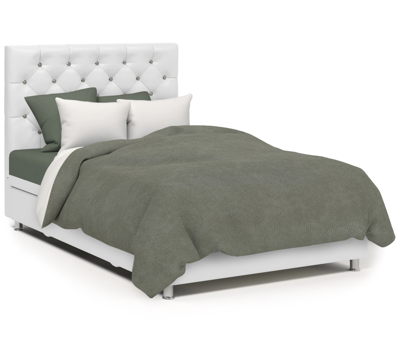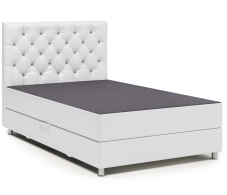 Наполнитель: пенополиуретан (ППУ), пружиный блок, войлок, обивочная ткань. Kомплектация: вместительный ящик для белья.
