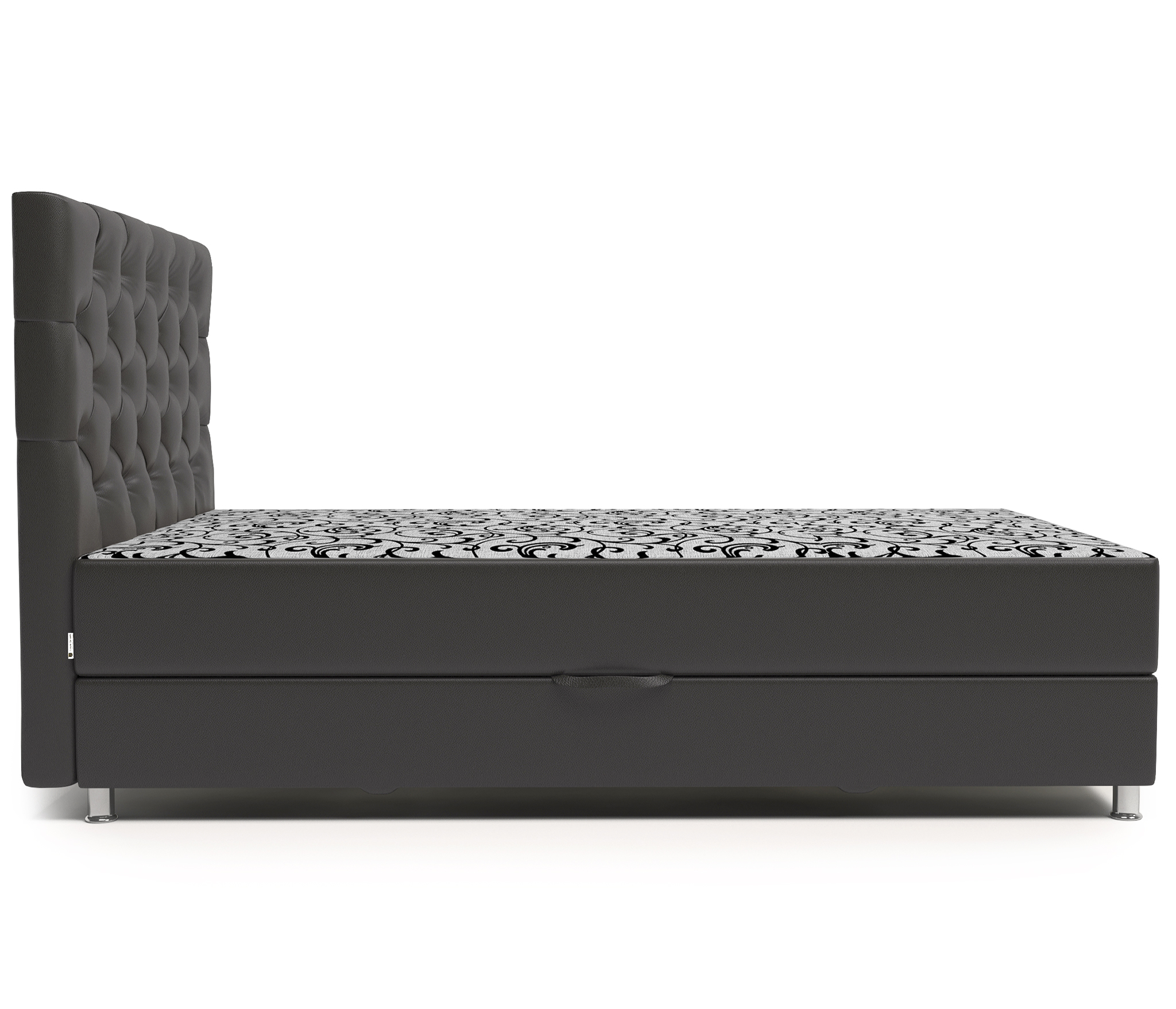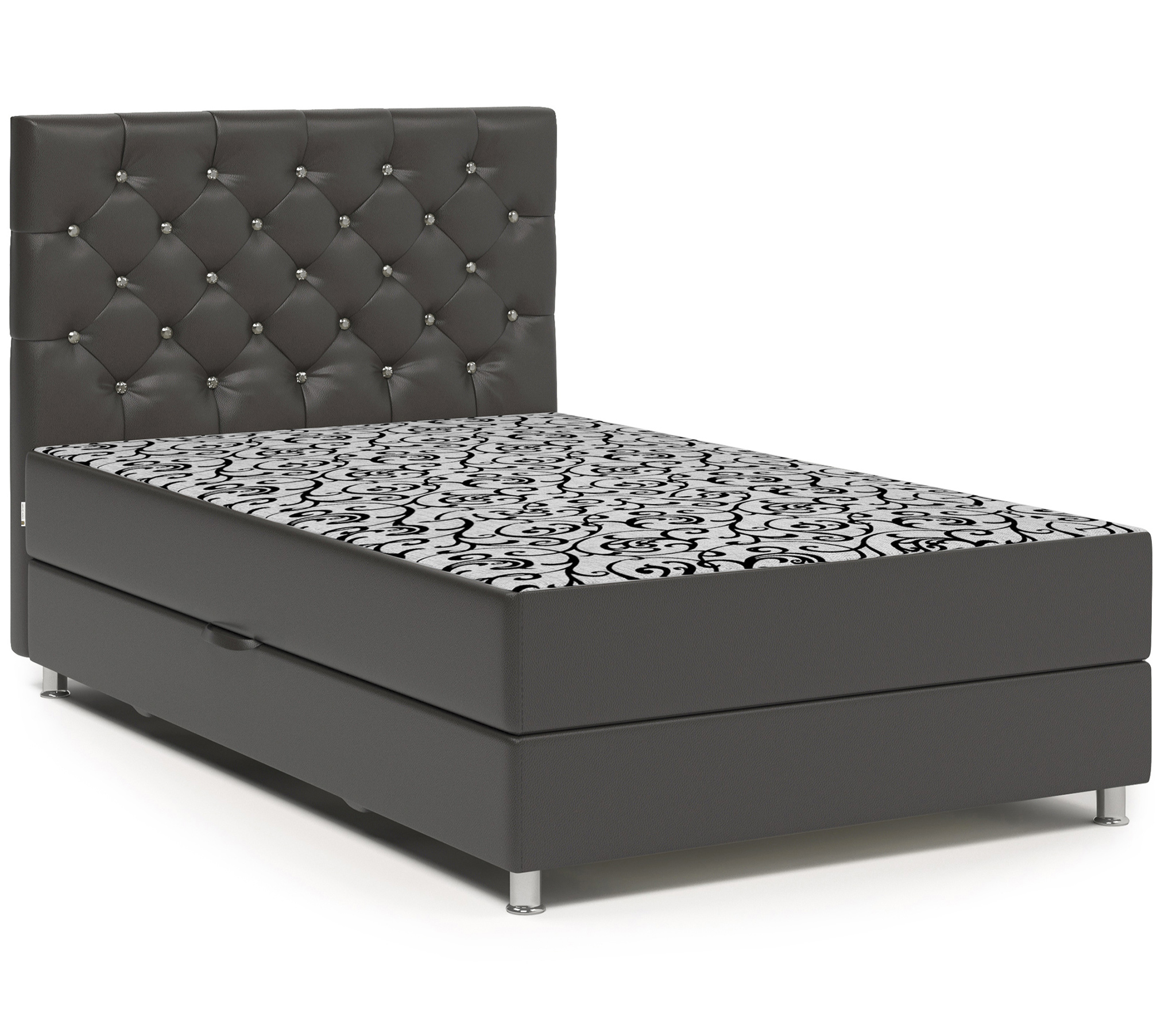 Наполнитель: пенополиуретан (ППУ), пружиный блок, войлок, обивочная ткань. Kомплектация: вместительный ящик для белья.