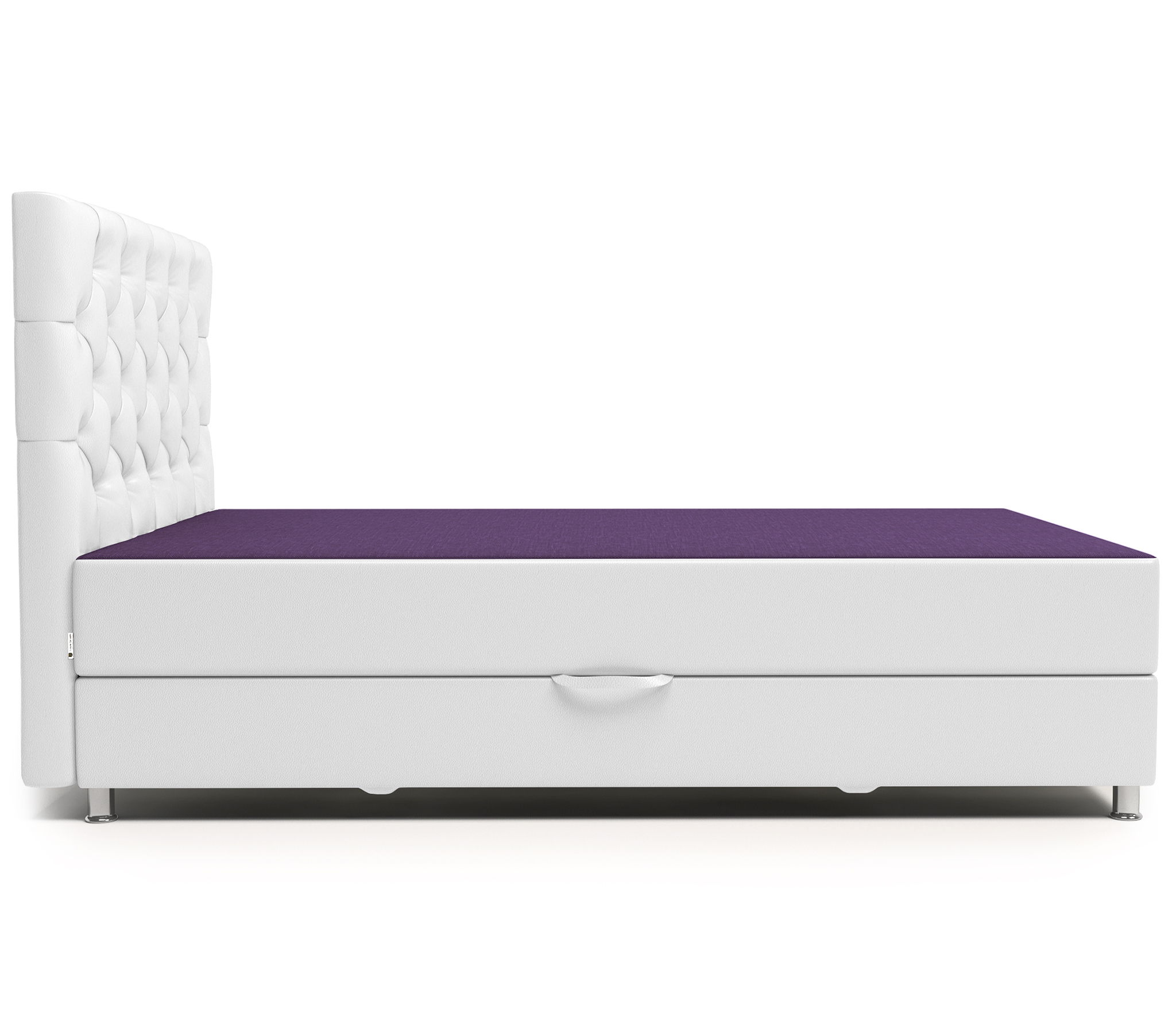 Наполнитель: пенополиуретан (ППУ), пружиный блок, войлок, обивочная ткань. Kомплектация: вместительный ящик для белья.