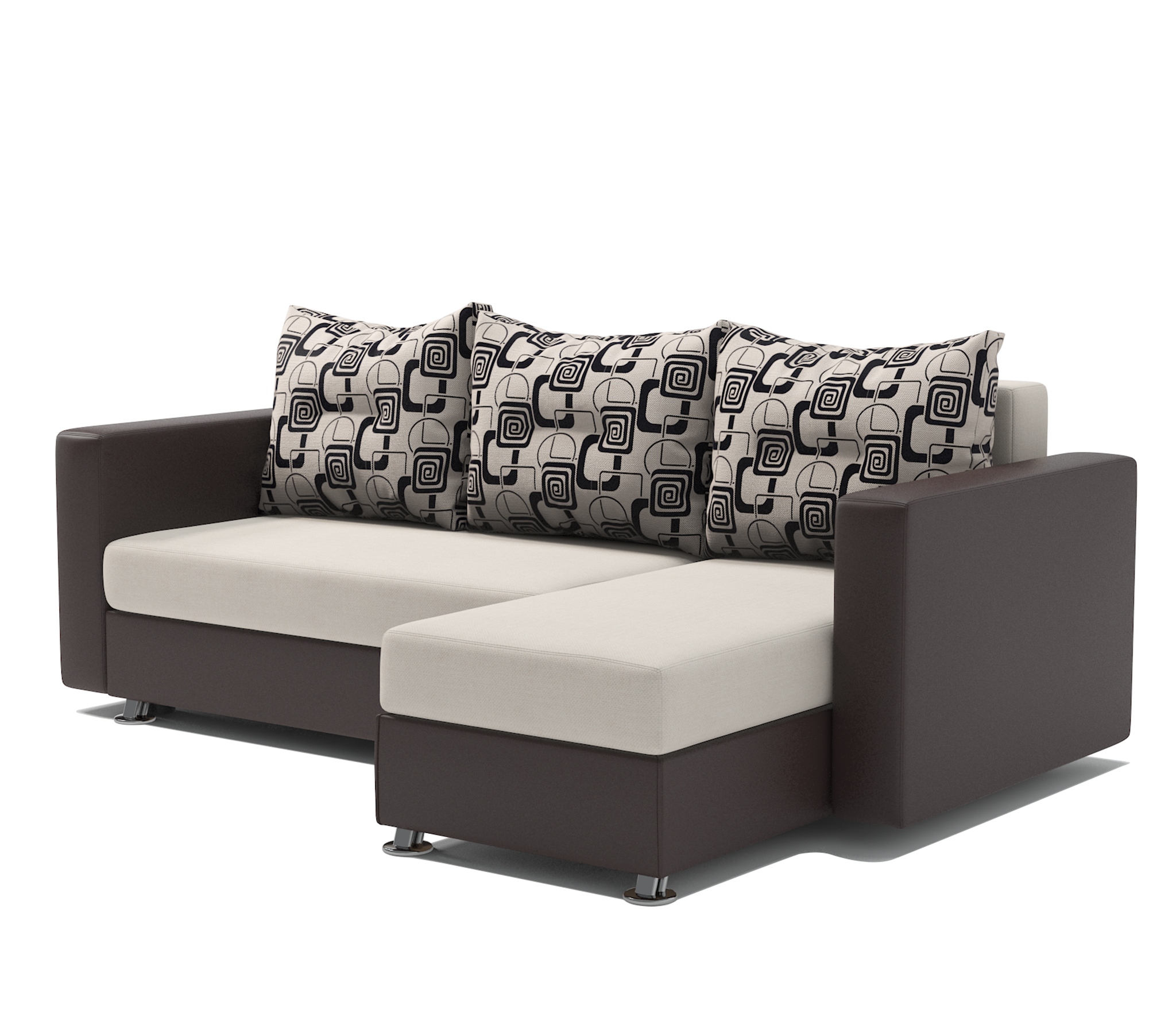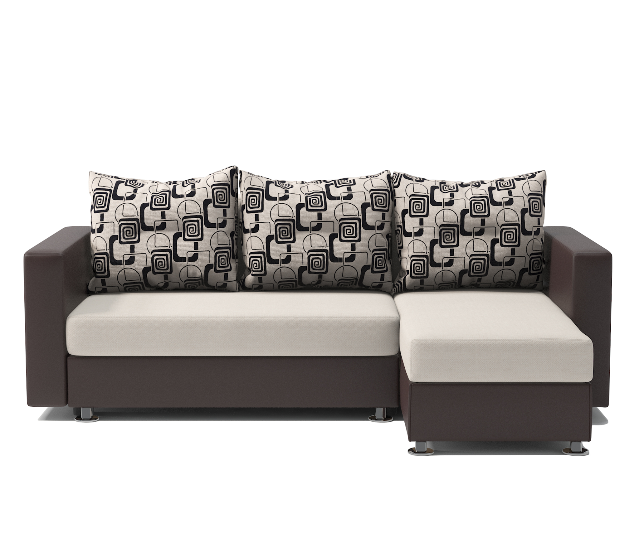 Угловой диван Ария правый, шенилл / экокожа (Коричневый/Бежевый)