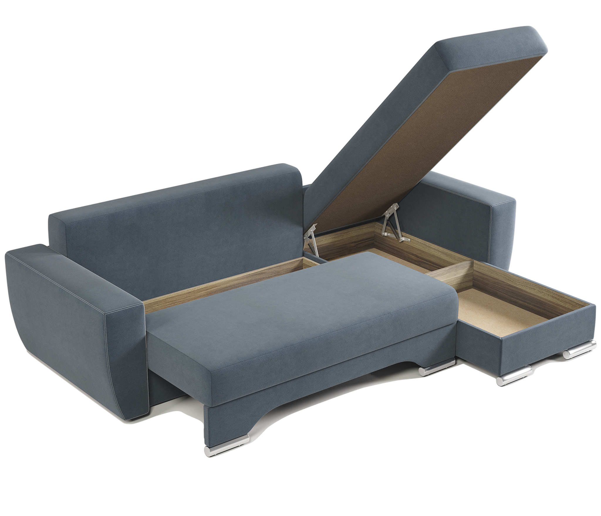 Угловой диван ЕвроШаг левый, велюр (Голубой)