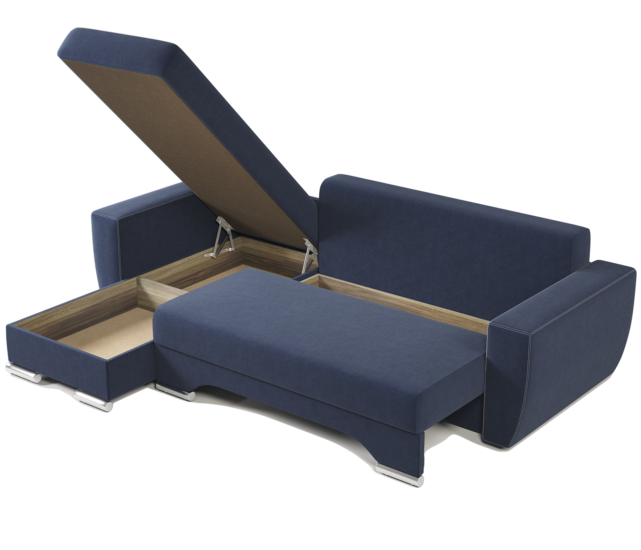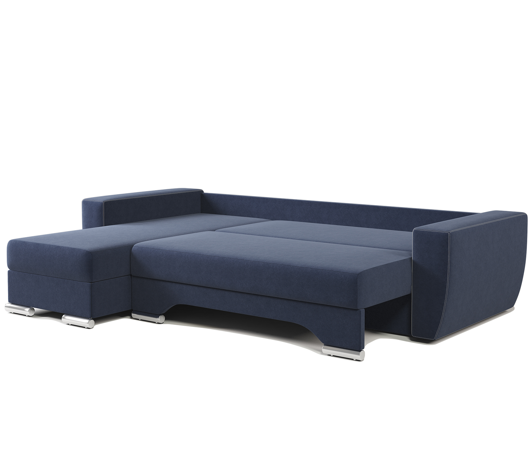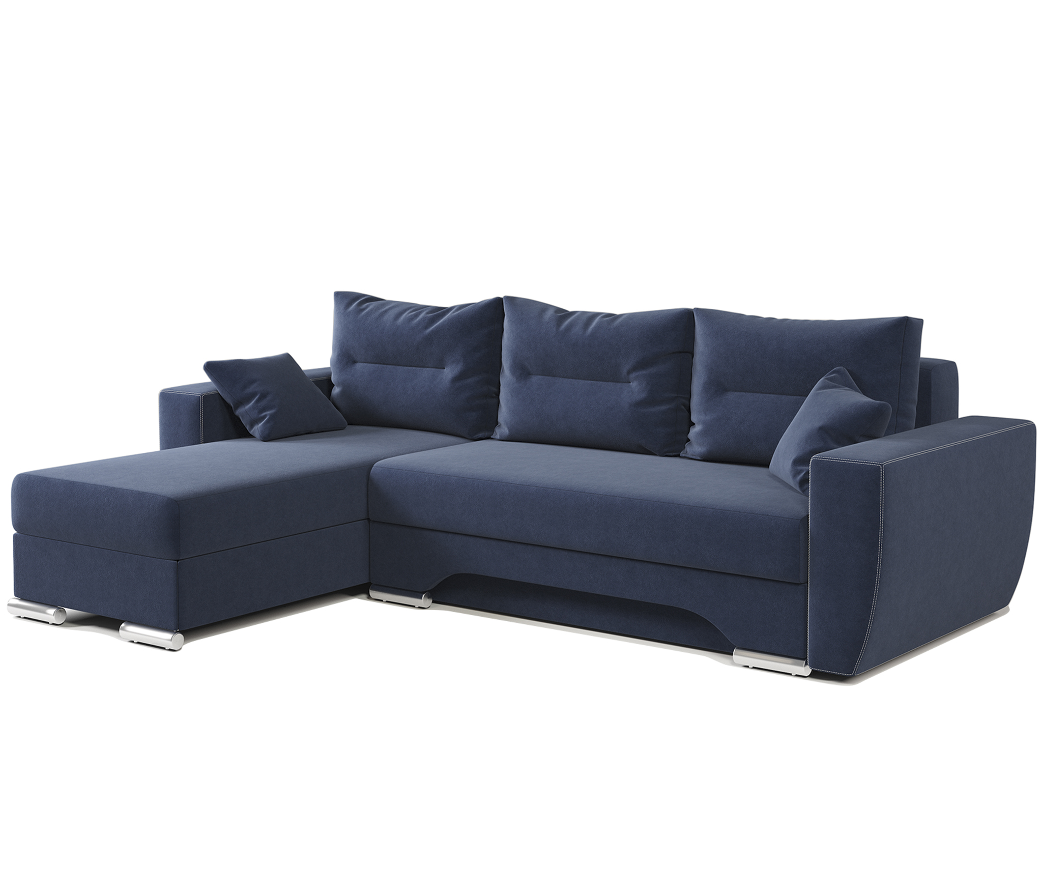 Угловой диван ЕвроШаг левый, велюр (Синий)