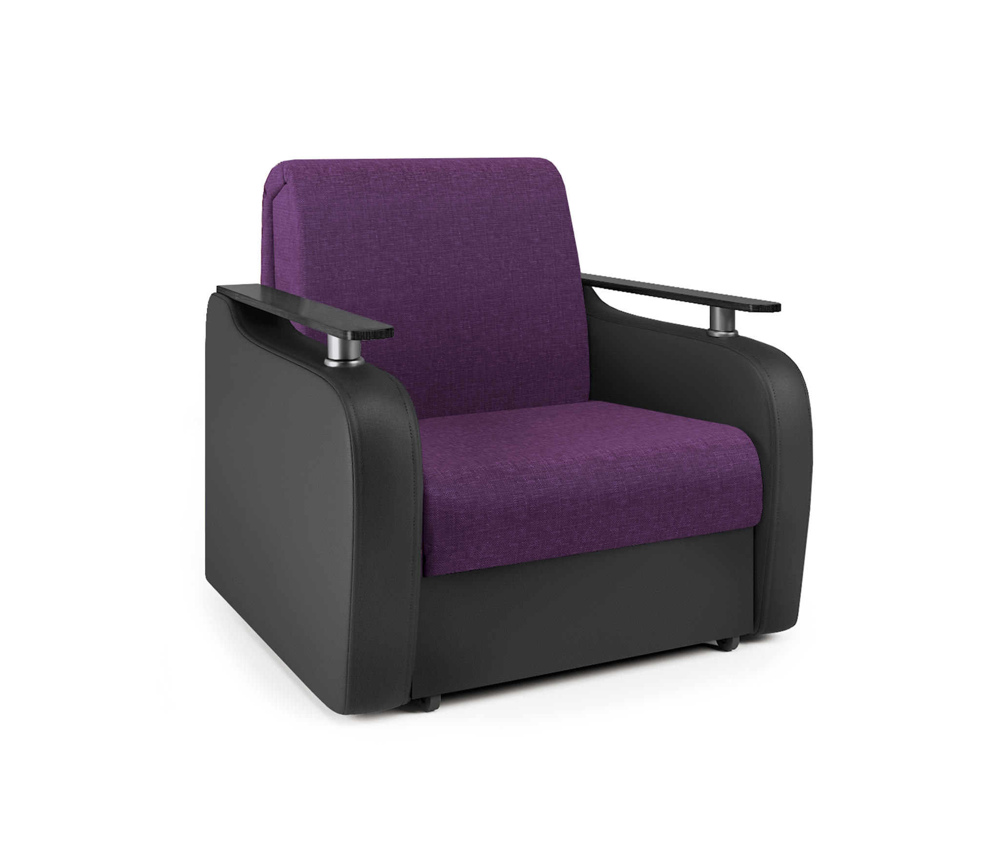 Кресло-кровать Гранд Д, рогожка/ экокожа (Черный/Фиолетовый)