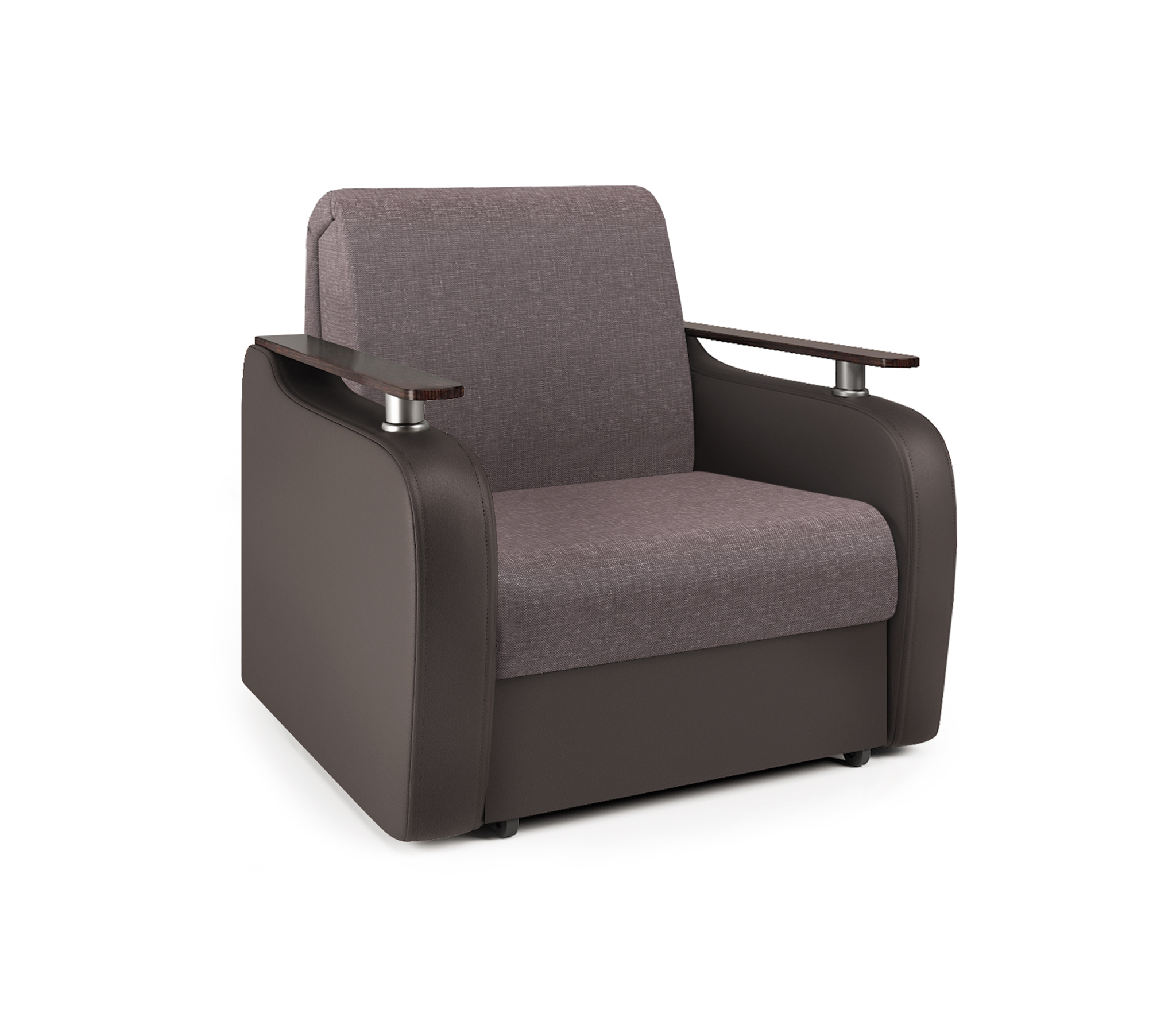 Кресло-кровать Гранд Д, рогожка/ экокожа (Коричневый/бежевый)
