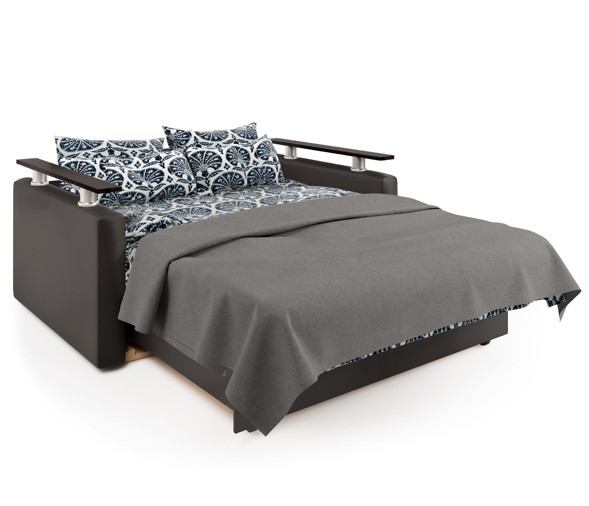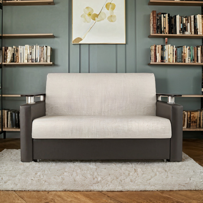 Диван-кровать Шарм 120, экокожа/шенилл (Бежевый/ Коричневый)