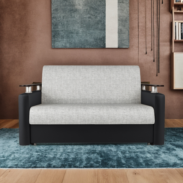 Диван-кровать Шарм 120, экокожа/шенилл (Черный/Серый)