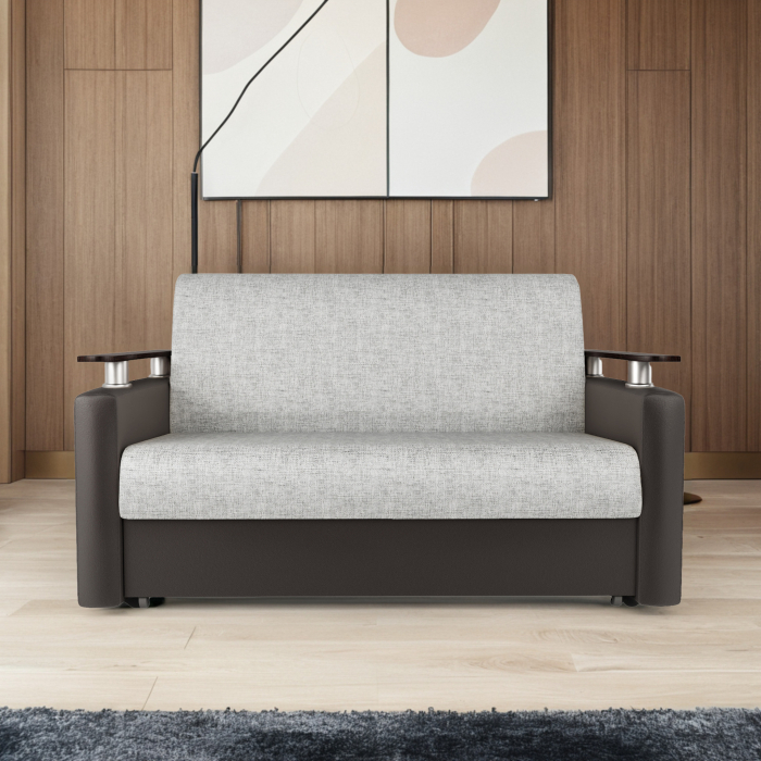 Диван-кровать Шарм 120, экокожа/шенилл (Серый/ Коричневый)