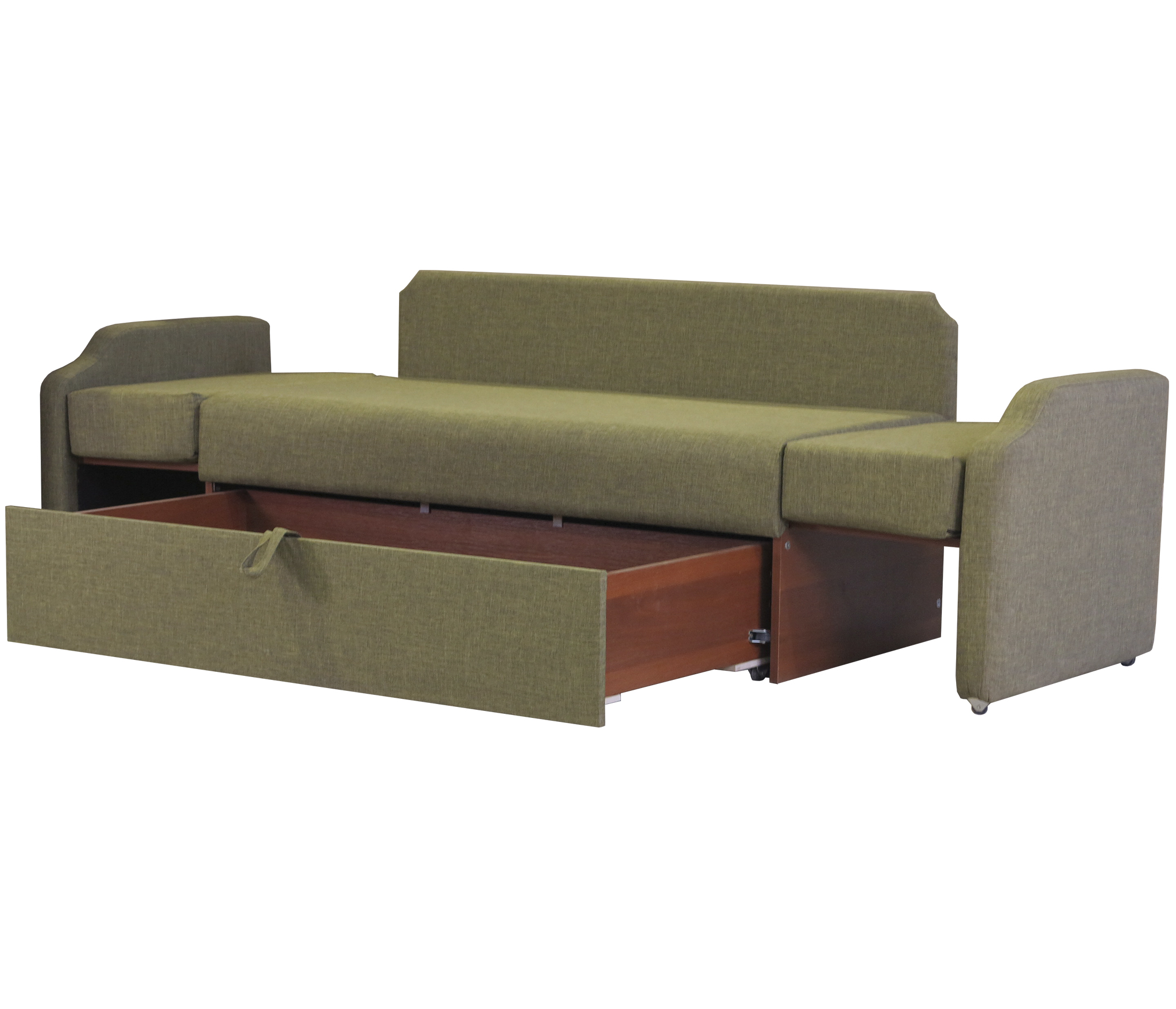Одним простым движением кушетка разбирается до полноценного спального места. Есть большой ящик для хранения вещей. Очень довольна покупкой, рекомендую.