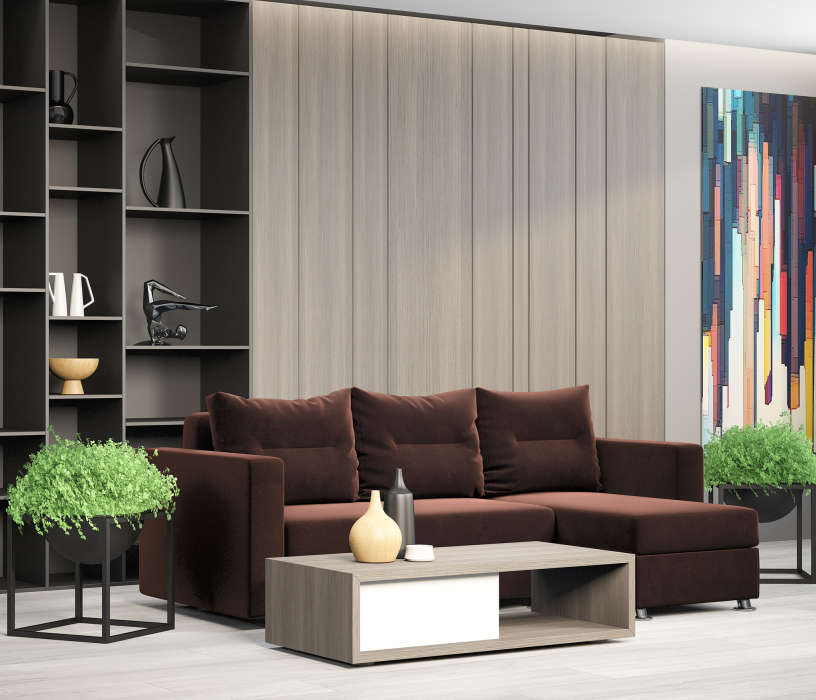 Особенностью углового дивана Ария в обивке велюра является современная матовая фактура ткани, материал обладает высокими потребительскими и эксплуатационными свойствами супермягкость, износоустойчивость, простой уход, гипоаллергенность, не токсично, дышащая ткань, цветоустойчивость. Ткань обладает всеми преимуществами качественного велюра – приятная бархатистость, износоустойчивость, легкость в уходе. Плотность ткани 280 г/кв.м. В основе лежит полиэстер (PES) 100%. Показатель устойчивости к истиранию для велюра составляет более 60 000 циклов.