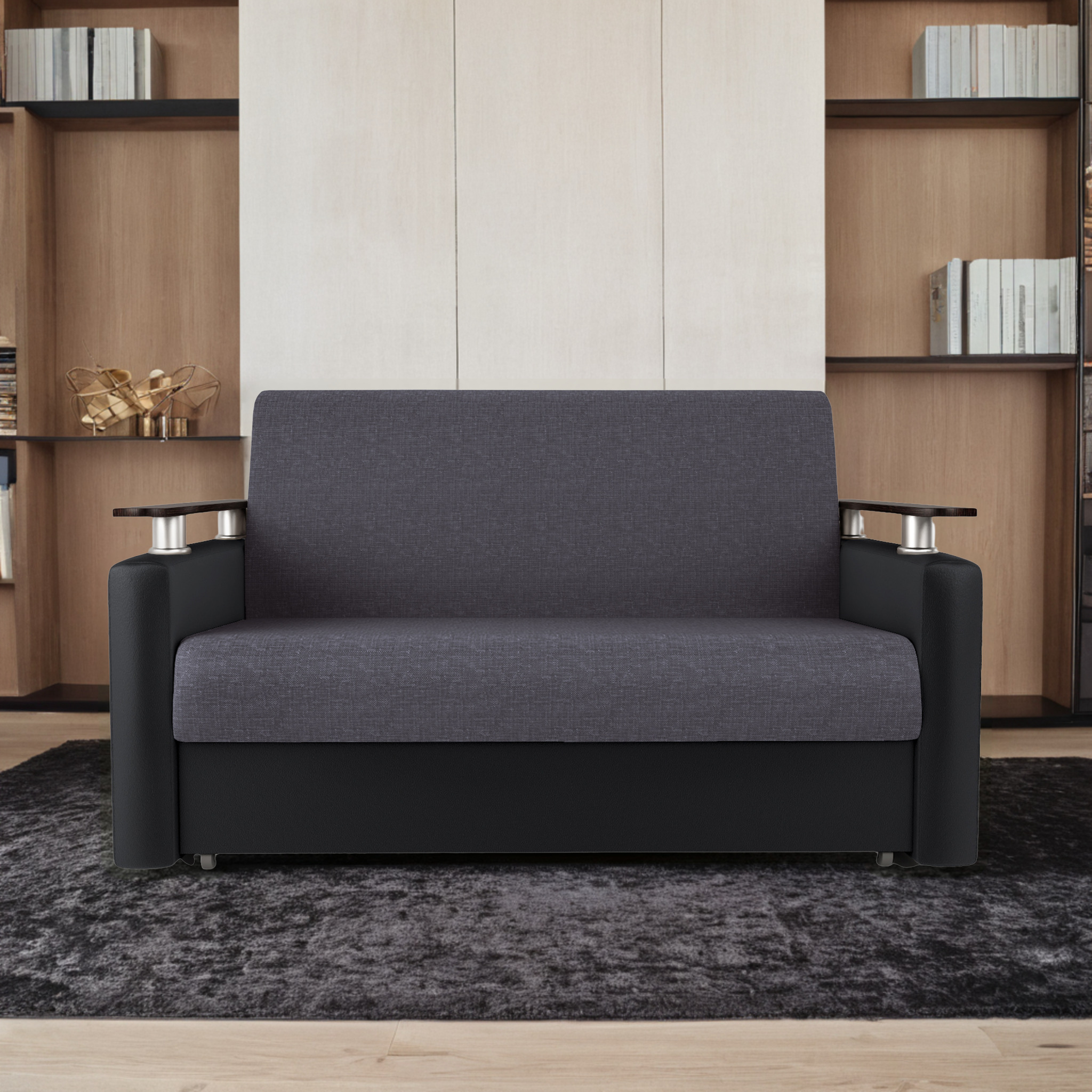 Отзывы о Столплит Диван-кровать Шарм 120, рогожка/экокожа Черный/Серый