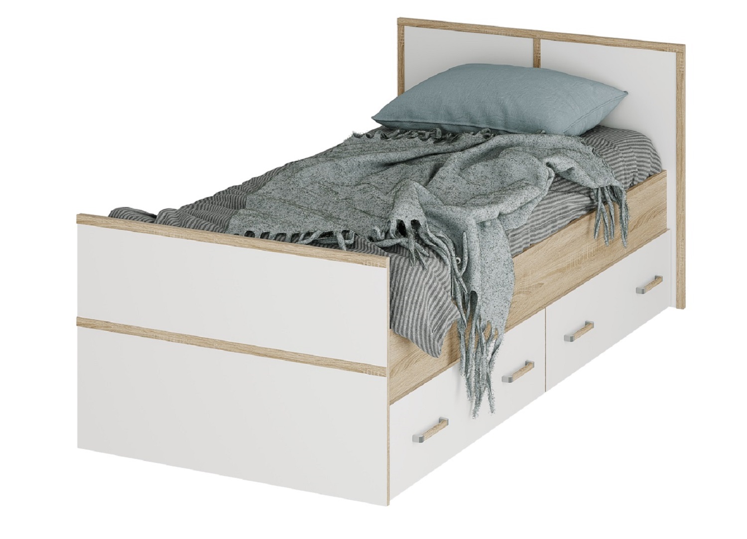 Кровать Сакура с проложками ДСП 90х200 (Дуб Сонома, Белый) Код I0000434306