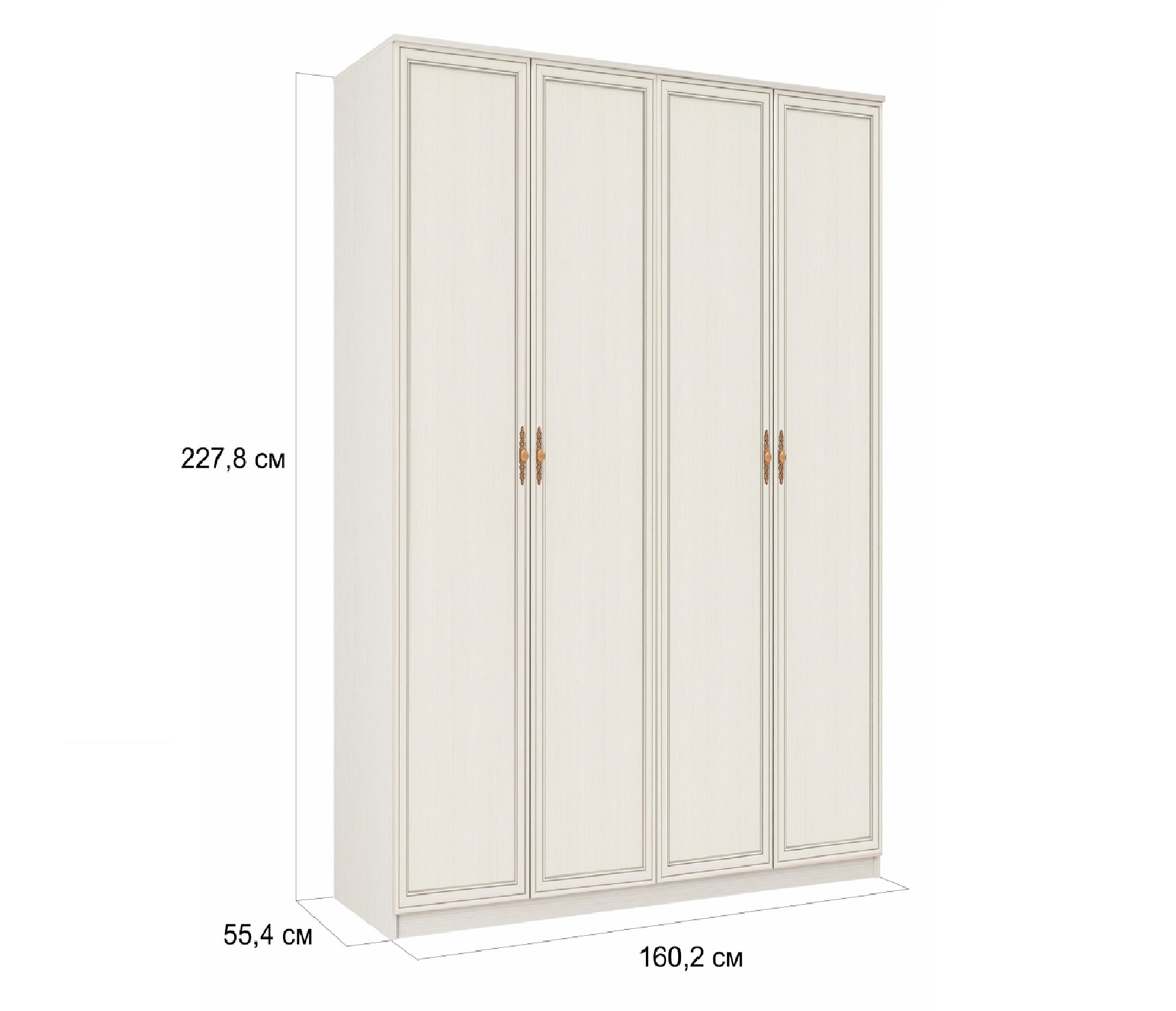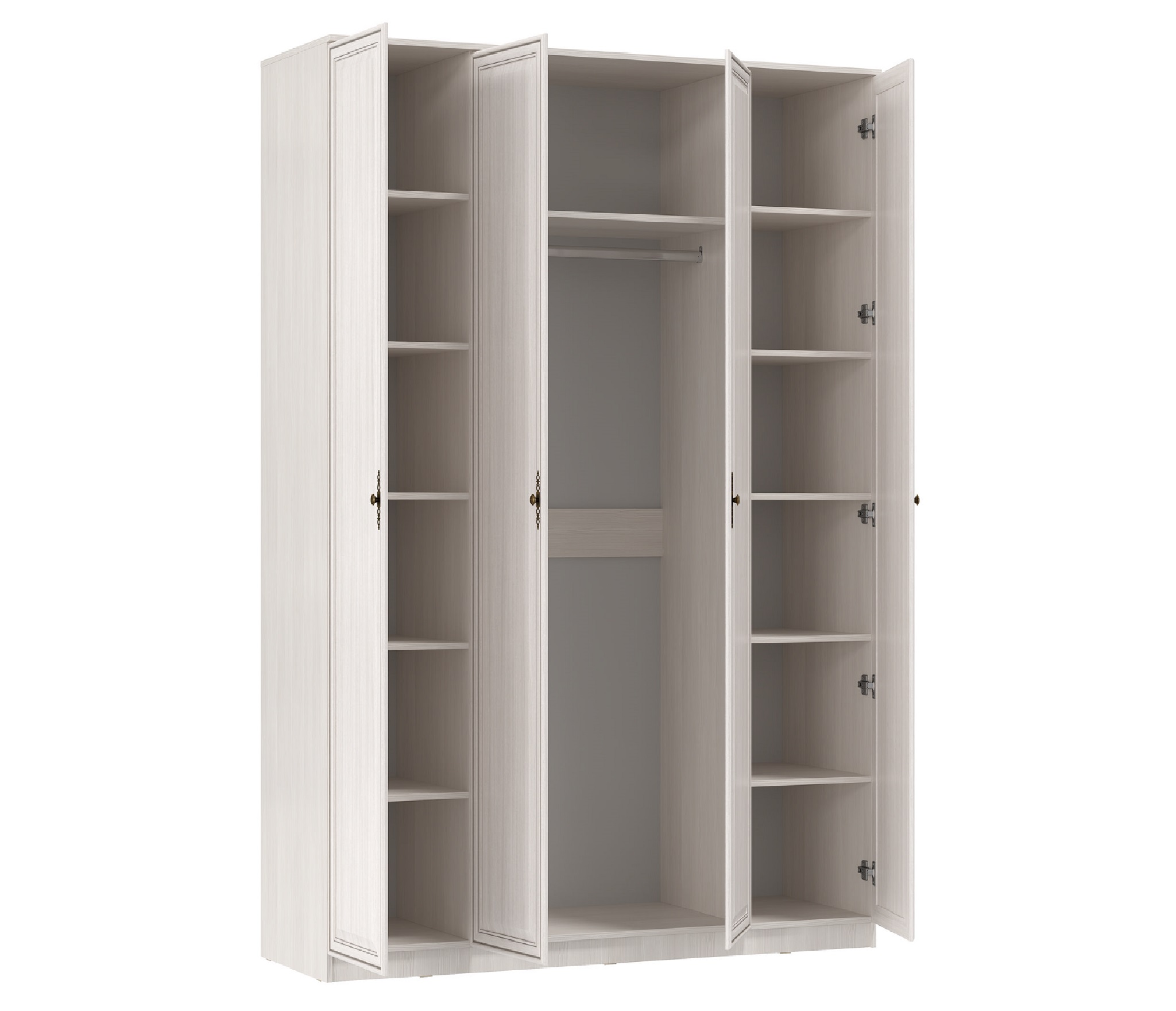 Распашной 4-х дверный шкаф для одежды Габриэлла 06.39 с глухими дверьми идеально дополнит интерьер прихожей, спальни, гостиной, кабинета или офиса.