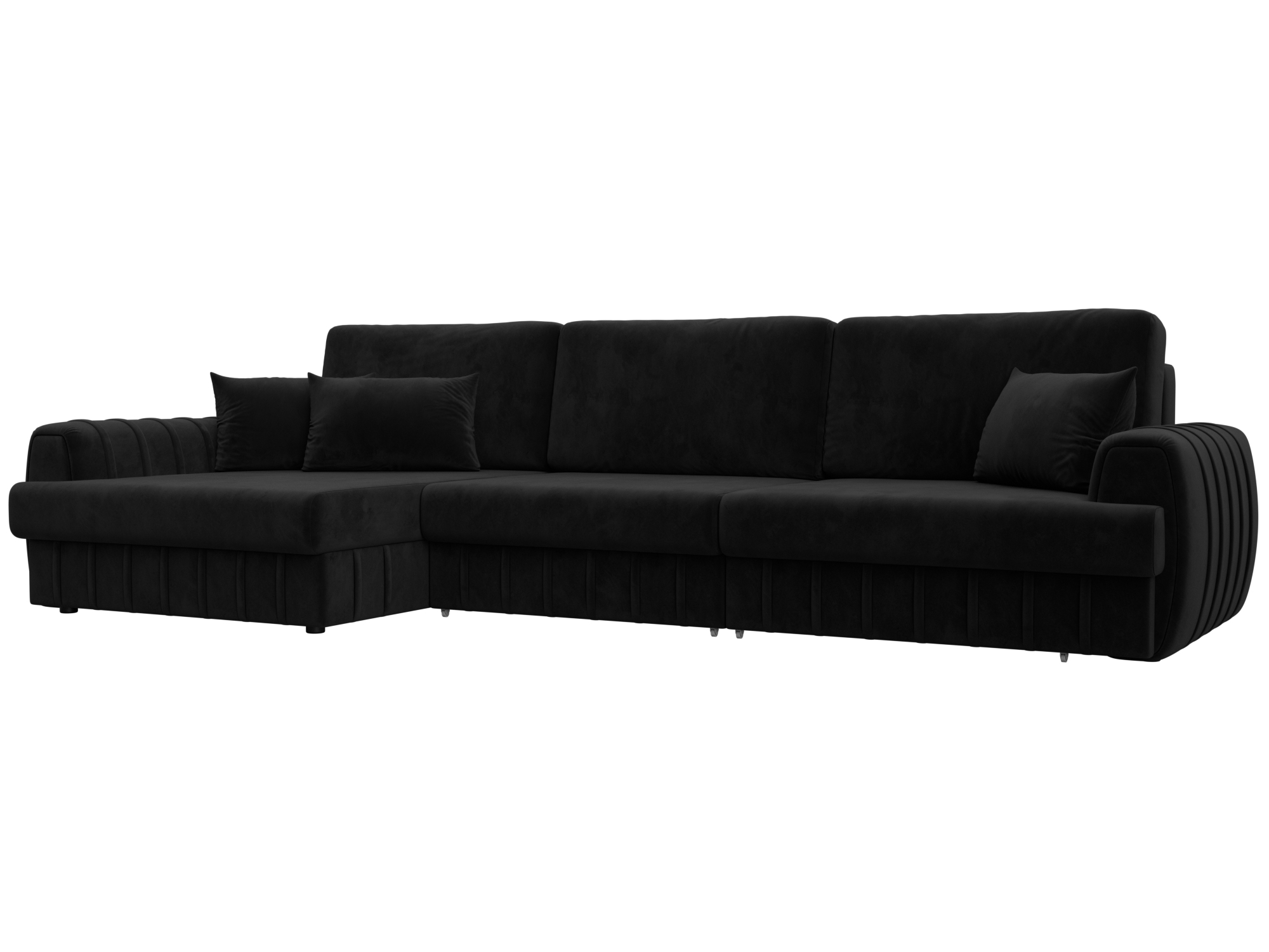 Отзывы о Столплит Диван угловой Лига-057 НПБ Лонг угол левый, велюр SEVEN Черный