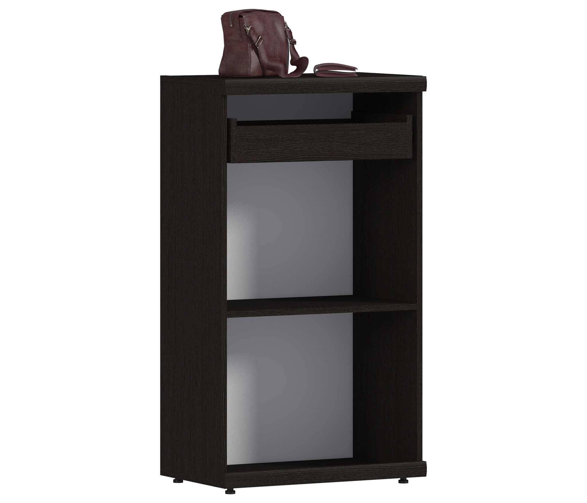 Тумба «Гретта СБ-967» станет функциональным дополнением для коридора или прихожей, отлично вписавшись даже в маленькое помещение. Легко выдвигающийся ящик прекрасно подойдет для хранения ключей и аксессуаров. За дверцей расположены две вместительные секции, которые станут идеальным пристанищем для обуви. Верхняя поверхность тумбы будет служить удобным столиком – как для различных мелочей, так и для предметов декора.