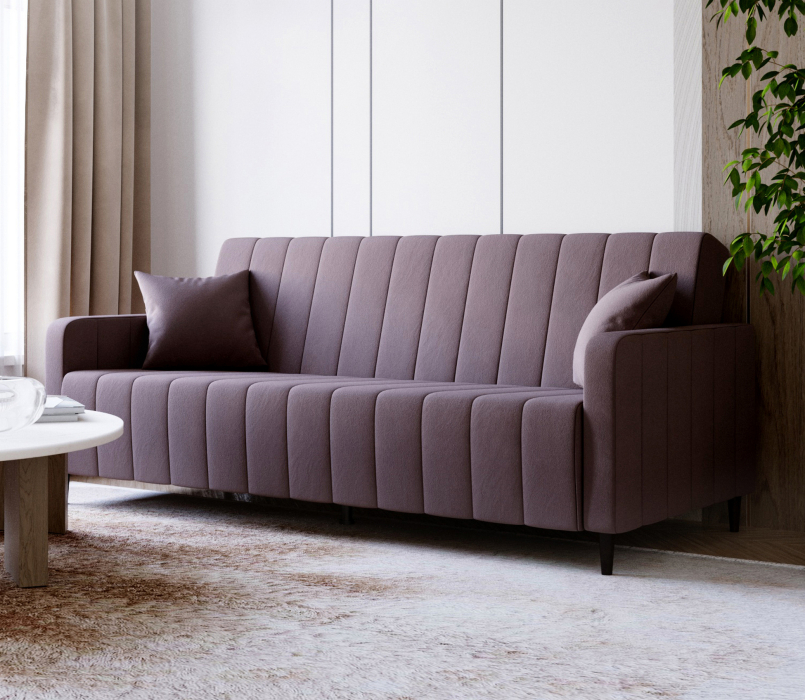 Компактный диван «Берген Lux» свободно находит себе место в любом жилом помещении. Благодаря прострочке на спинке, посадочной части и подлокотниках создан подчёркнуто уютный образ дивана. Удобный механизм трансформации «книжка» позволяет быстро и свободно превратить диван в полутороспальную кровать. Легкость и надёжность механизма – залог того, что с диваном справится даже подросток или пожилой человек. Во внешнем виде модели сразу же угадывается стиль «mid-century modern», поэтому диван великолепно сочетается с другими предметами интерьера. И вместе с этим, наилучшим образом мебель «Берген Lux» сочетается с моделями «Норман» - диваном и креслом.