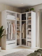 Представляем угловой шкаф для одежды распашной с ящиками, идеально подходящий для современного интерьера. Этот стильный белый шкаф станет не только функциональным, но и эстетичным дополнением вашей комнаты, благодаря своему изящному дизайну. Он прекрасно впишется в прихожую, спальню, детскую или гостиную, обеспечивая достаточное пространство для хранения одежды.