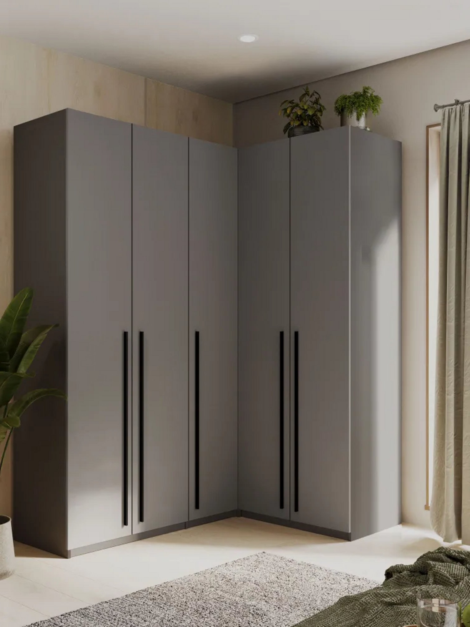 Представляем угловой шкаф для одежды распашной с ящиками, идеально подходящий для современного интерьера. Этот стильный белый шкаф станет не только функциональным, но и эстетичным дополнением вашей комнаты, благодаря своему изящному дизайну. Он прекрасно впишется в прихожую, спальню, детскую или гостиную, обеспечивая достаточное пространство для хранения одежды.