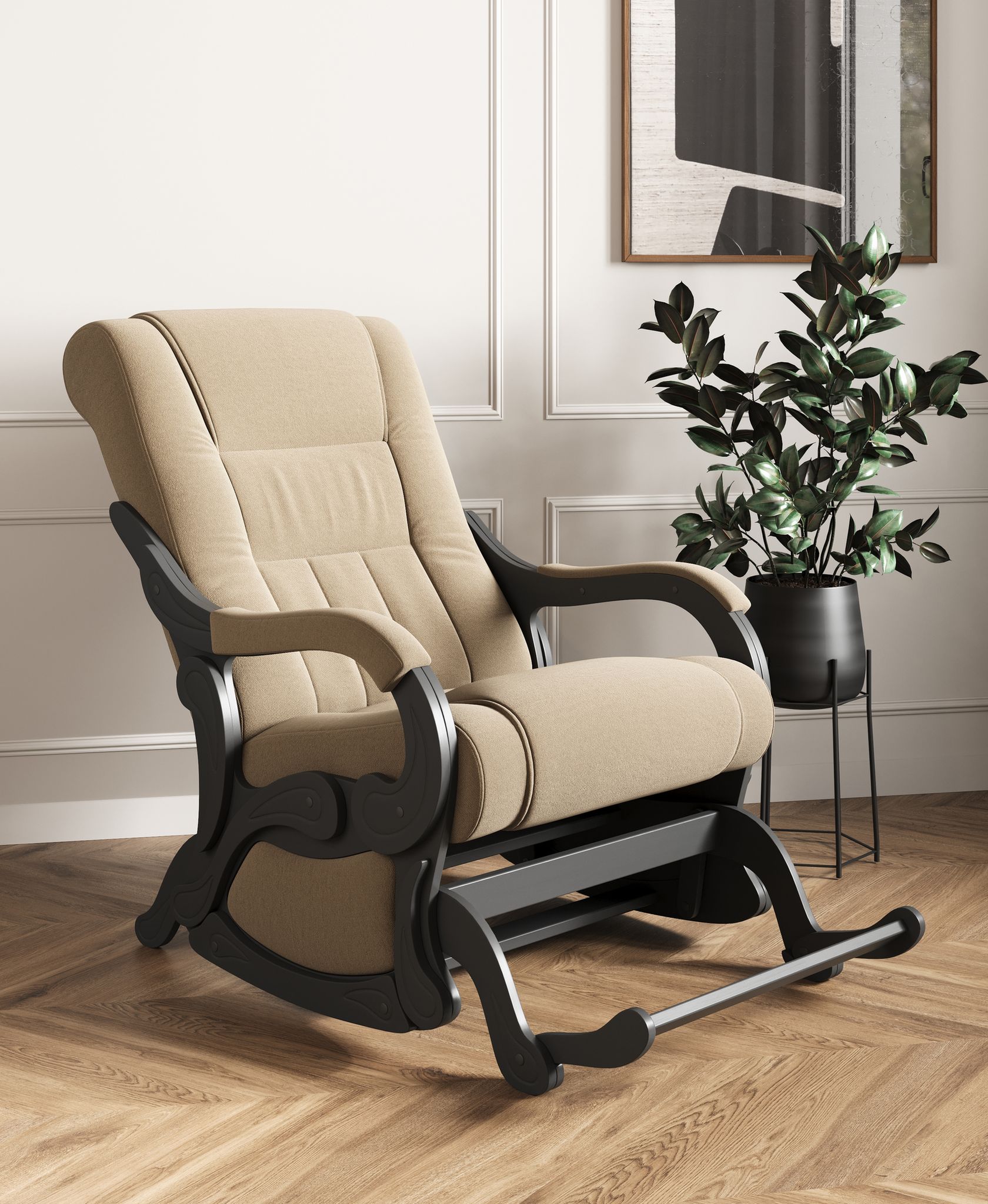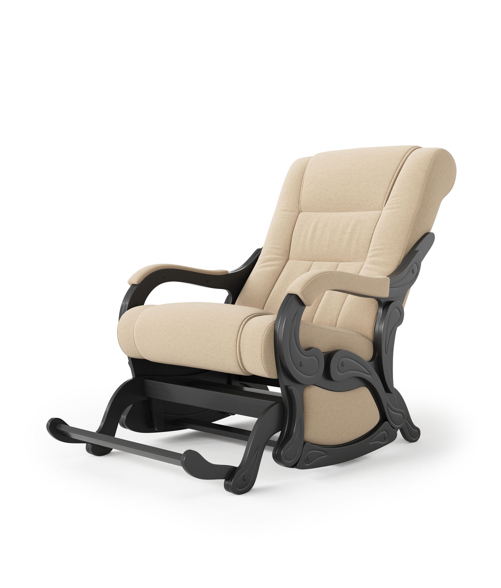 Шикарное кресло - качалка с маятниковым механизмом. Каркас изготовлен из дерева на высокотехнологичном оборудовании и выдерживает нагрузку до 150 кг. Конструкция кресла придает ему особую устойчивость – оно никогда не сдвинется с места при раскачивании, в отличие от простых кресел-качалок. Эргономичная форма сиденья и спинки, удобные мягкие подголовник и подлокотники делают очень комфортным. Кресло прекрасно подходит для любого, даже самого изысканного интерьера.