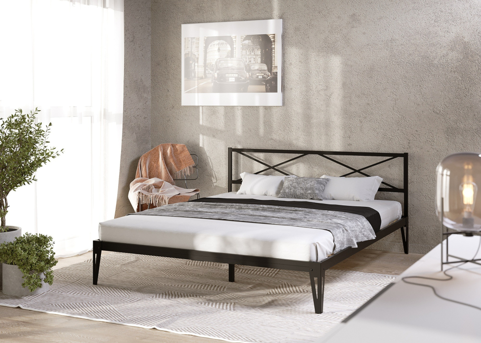 Металлическая кровать Тея добавляет в интерьер легкости.