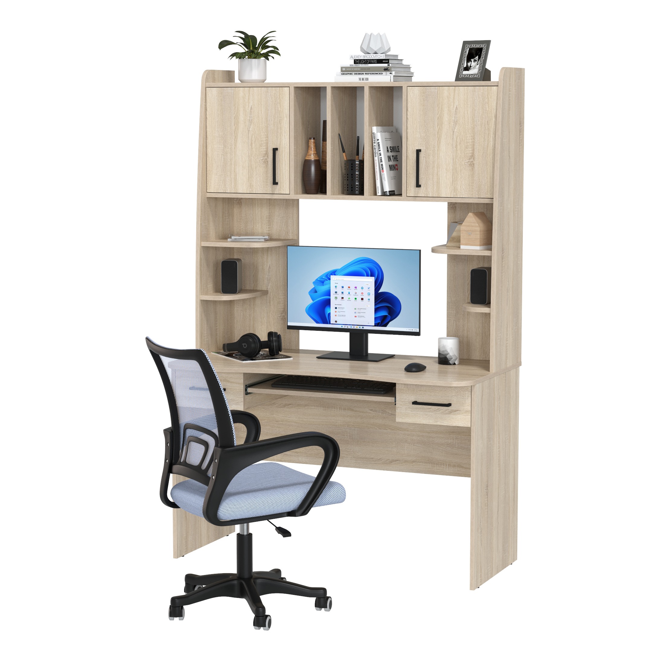 Отзывы о Столплит Компьютерный стол с надстройкой Бета и кресло компьютерное серое Дуб сонома