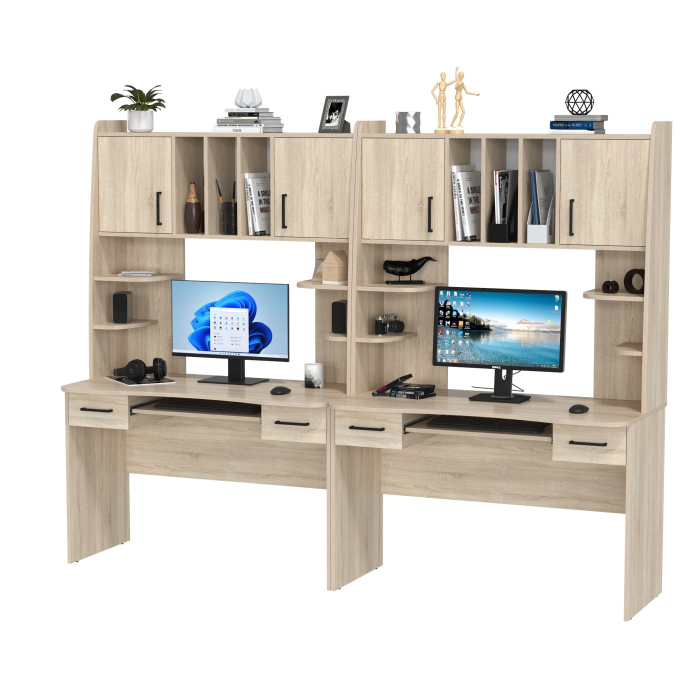 Каждый стол - стильный и функциональный помощник, который эффективно организует рабочее пространство. Благодаря удобным надстройкам и множеству полок, столы заменяют дополнительные шкафчики и полки, экономя место. Каждый стол помогает поддерживать порядок и организовать пространство для всех необходимых вещей. Столешницы с мягко закруглёнными краями безопасны и комфортны в использовании. Под столешницами расположены выдвижные ящики для канцелярии и удобные полки для клавиатуры, что упрощает доступ к необходимым вещам. Надстройки выполнены в виде стеллажей с двумя закрытыми отделениями с дверцами, открытыми полками и нишами с перегородками для удобного размещения книг и документов. Ниши под мониторы или ноутбуки расположены на оптимальной высоте, что способствует продуктивной работе и учёбе.