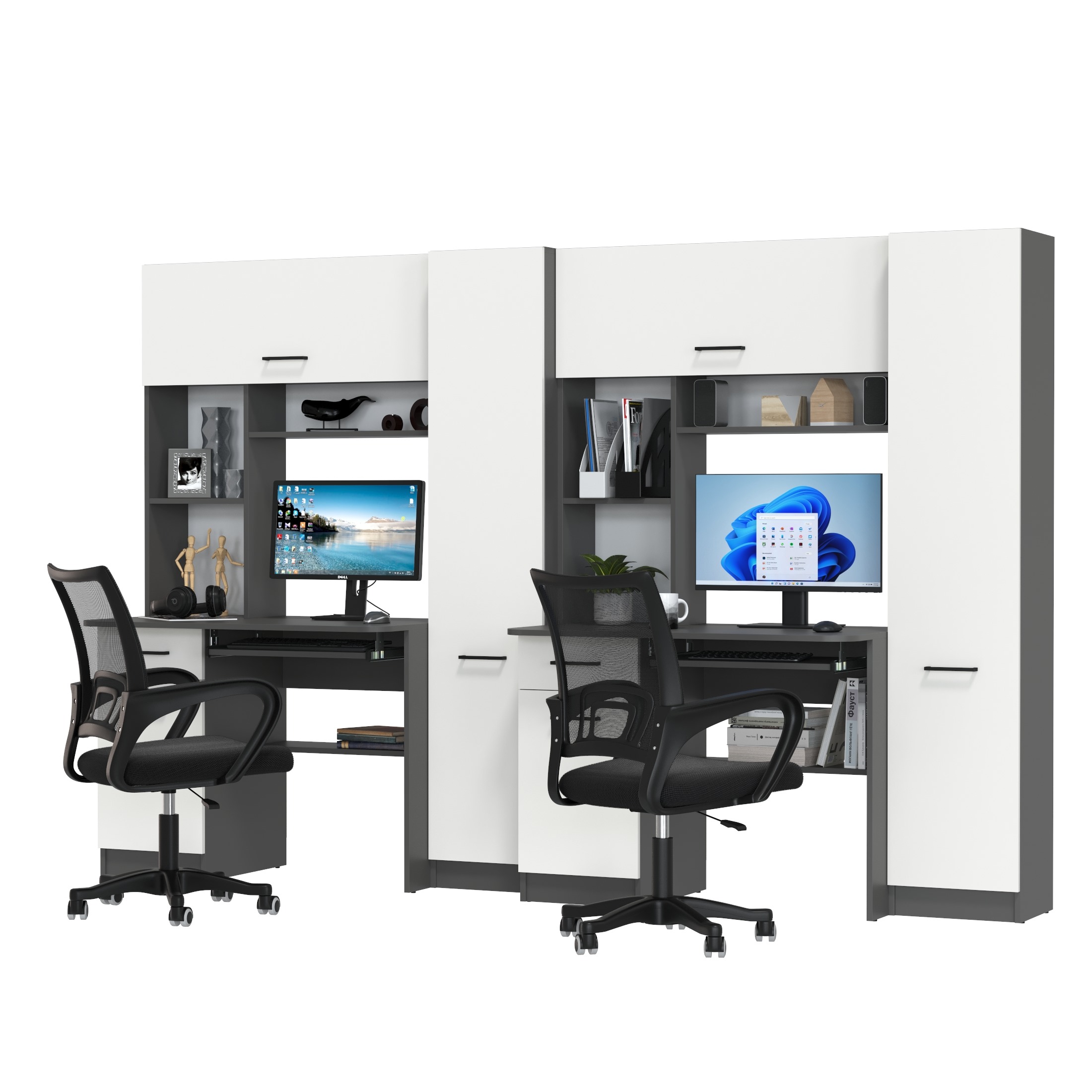 Столы рабочие для двоих с компьютерными креслами Aльфа (Графит/Белый) Код I0000436170
