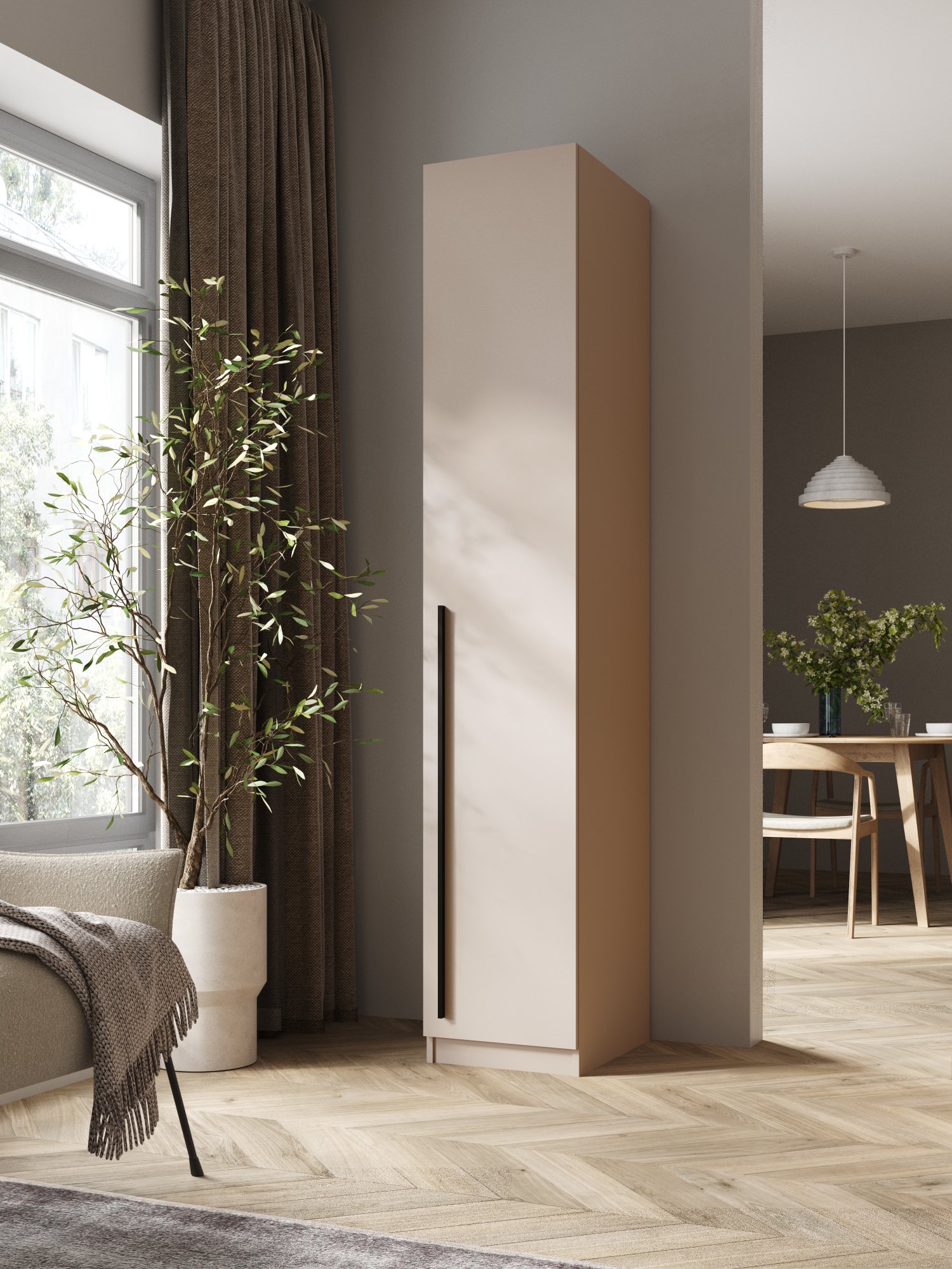 Шкаф предназначен для хранения одежды, что делает его незаменимым элементом в любом доме. Благодаря своему стильному и современному дизайну, он не только выполняет практическую функцию, но и служит украшением интерьера. Вы сможете разместить в нем как верхнюю одежду, так и различные аксессуары других сезонных вещей.